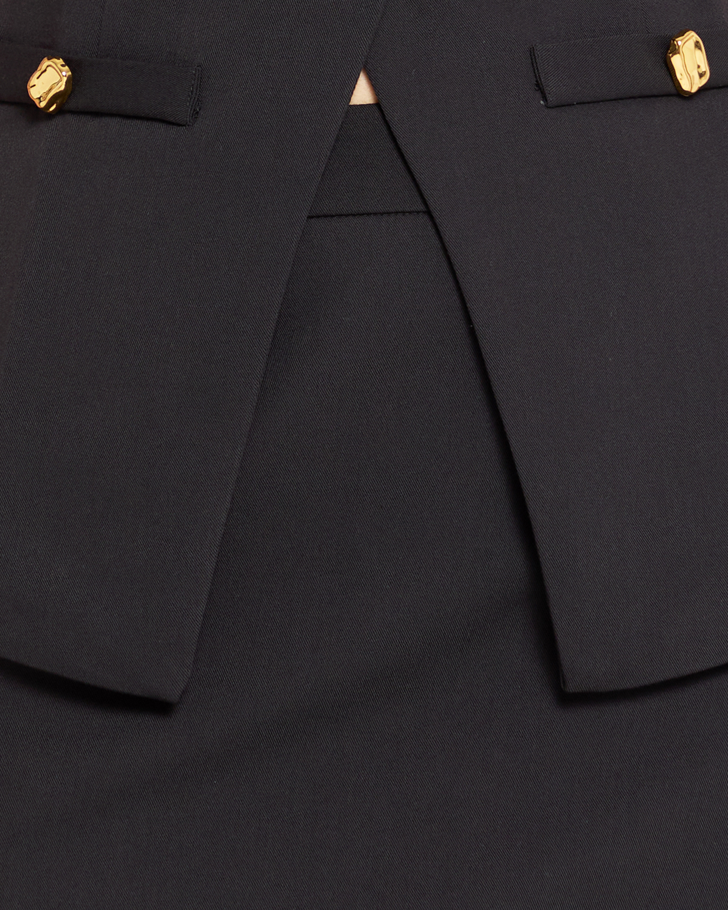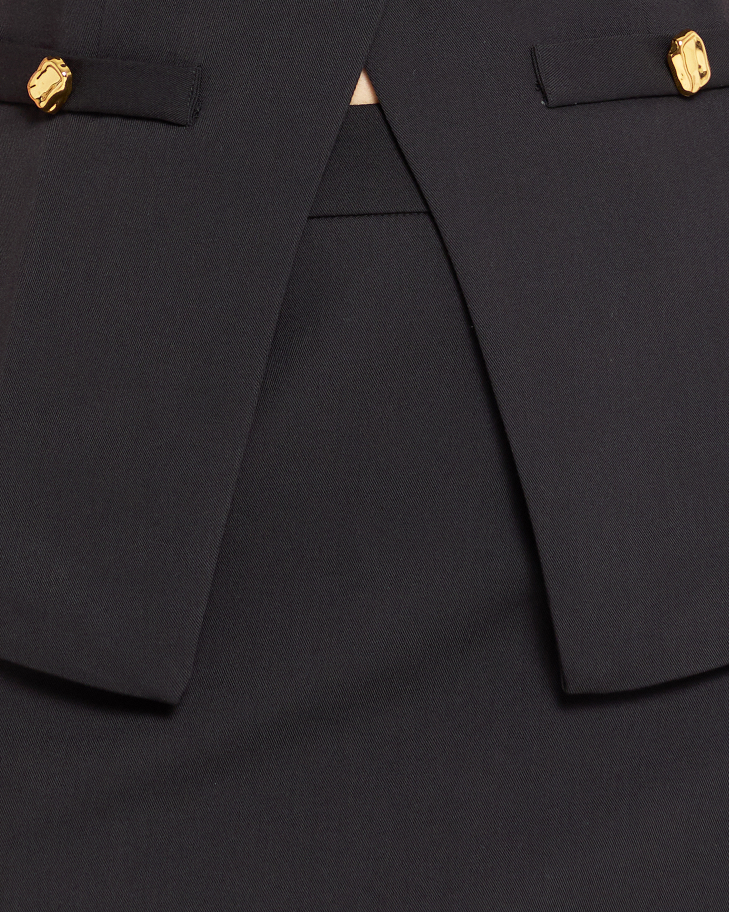 Elevate your wardrobe with the Claudia Set. Adorned with sculptural gold buttons, this set includes a stylish vest top and a matching mini skirt for a chic and easy fit. With a touch of elegance and modern edge, this set is perfect for any occasion.