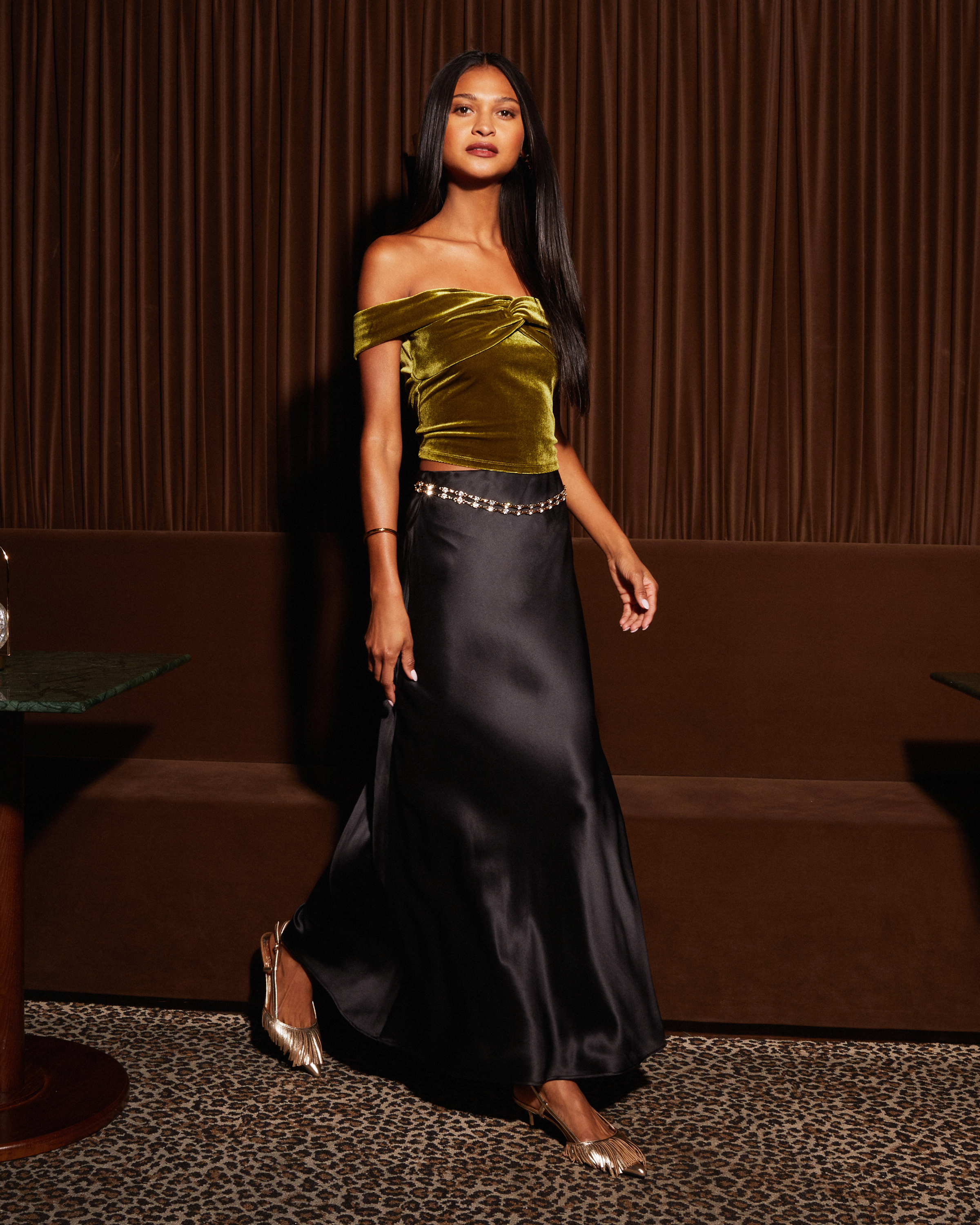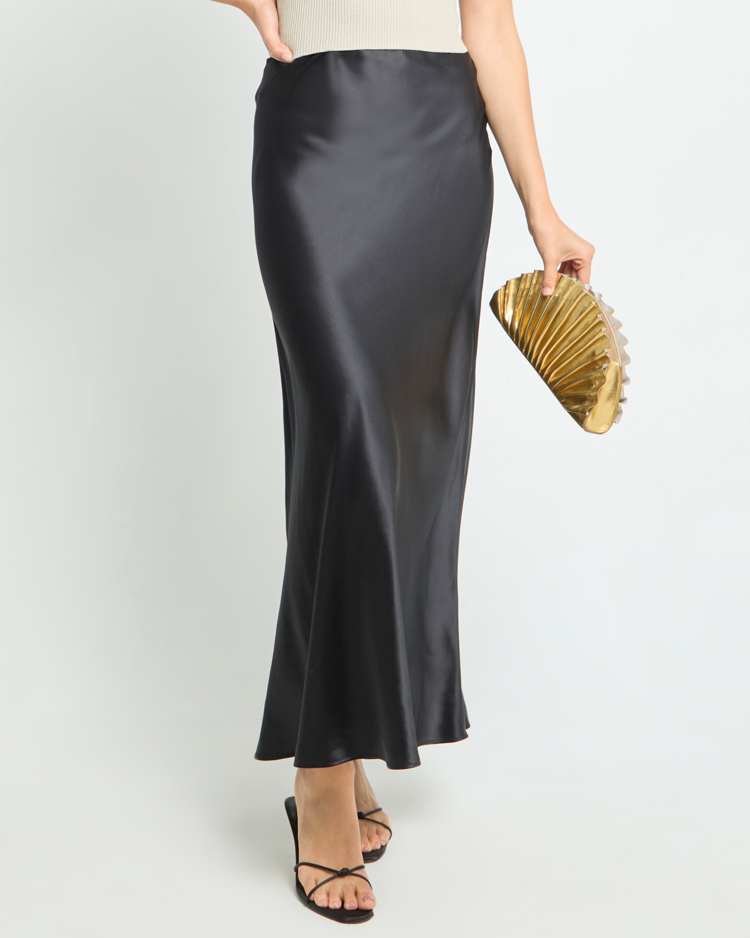 Expertly crafted for comfort and elegance, the Skylar Silk Skirt boasts a maxi length of luxurious silk. Done with dreamy softness and flowy shine, while the easy elastic waist ensures a perfect fit every time. Elevate your style with this must-have piece.