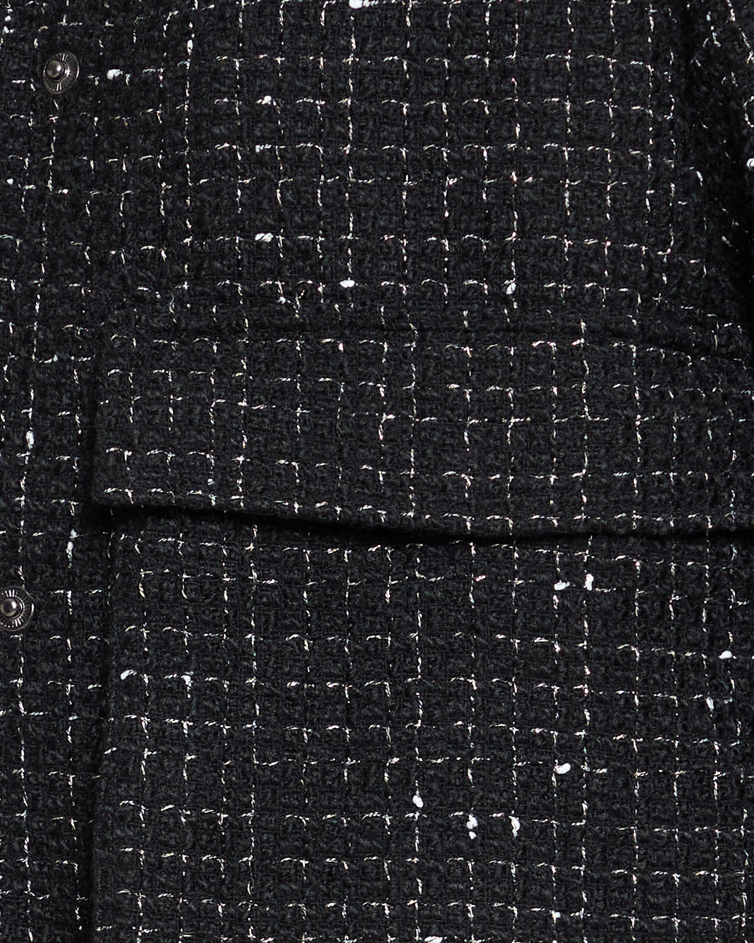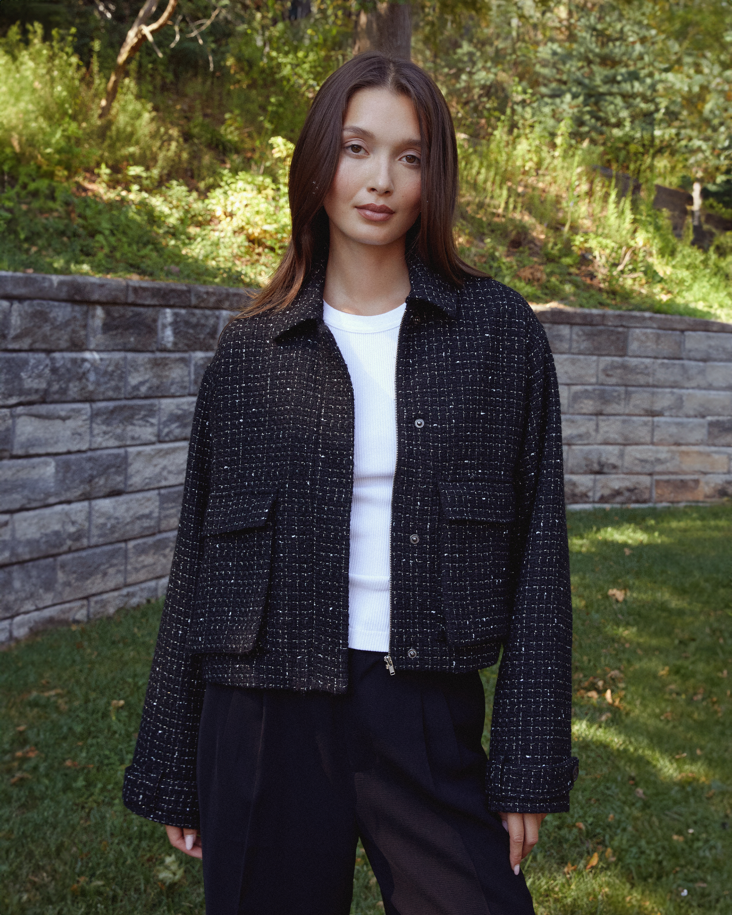 This jacket is extremely chic and well made! The material gives it structure while the boxiness gives it a cool factor you don't often see with tweed. The jacket easily elevates a simple outfit and is a great addition to any closet.