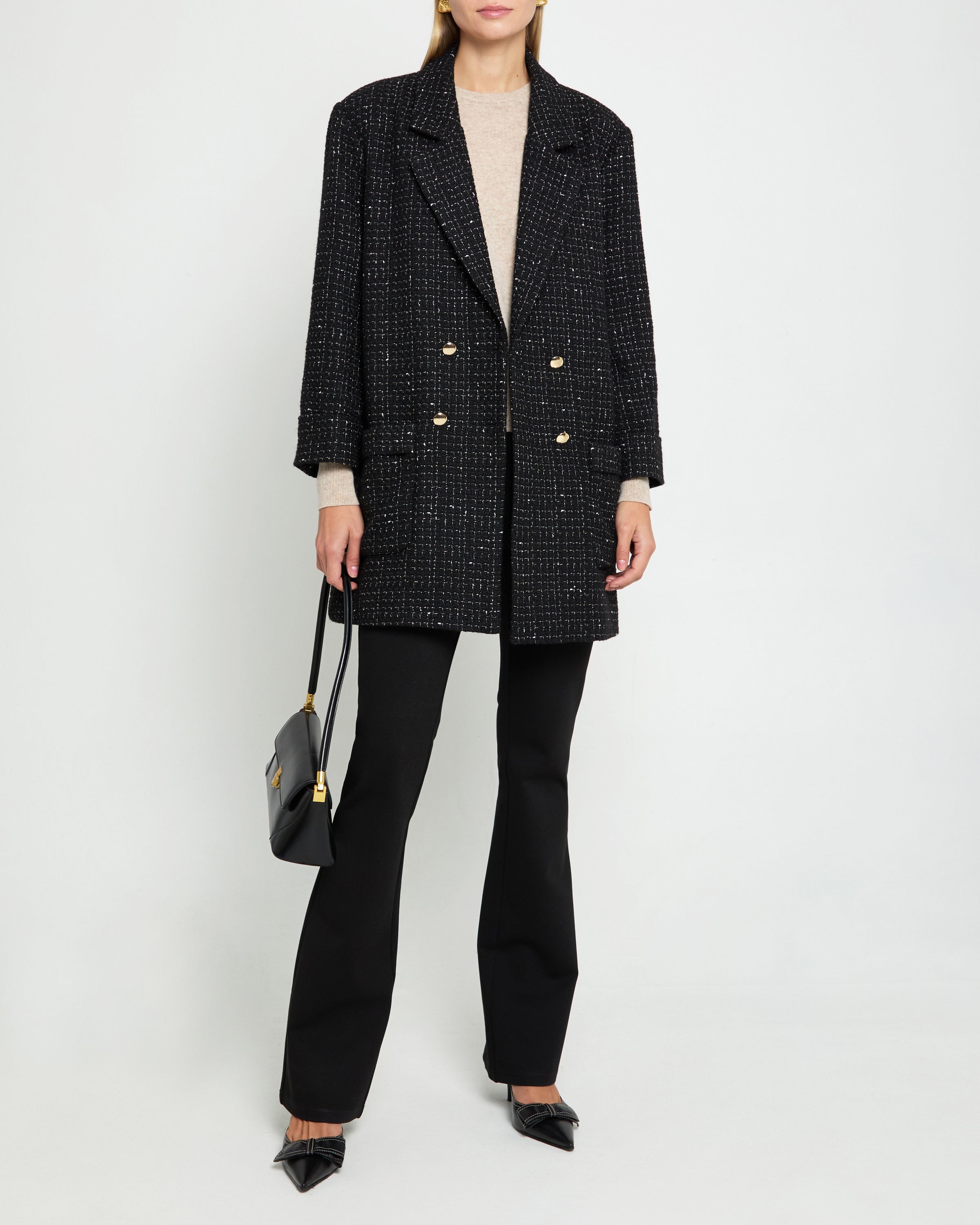 Revi Coat is the pinnacle of sophistication with its stunning double breasted design and oversized silhouette. Crafted with gorgeous tweed, this coat exudes timeless elegance. Elevate your style with confidence in this expertly tailored piece.