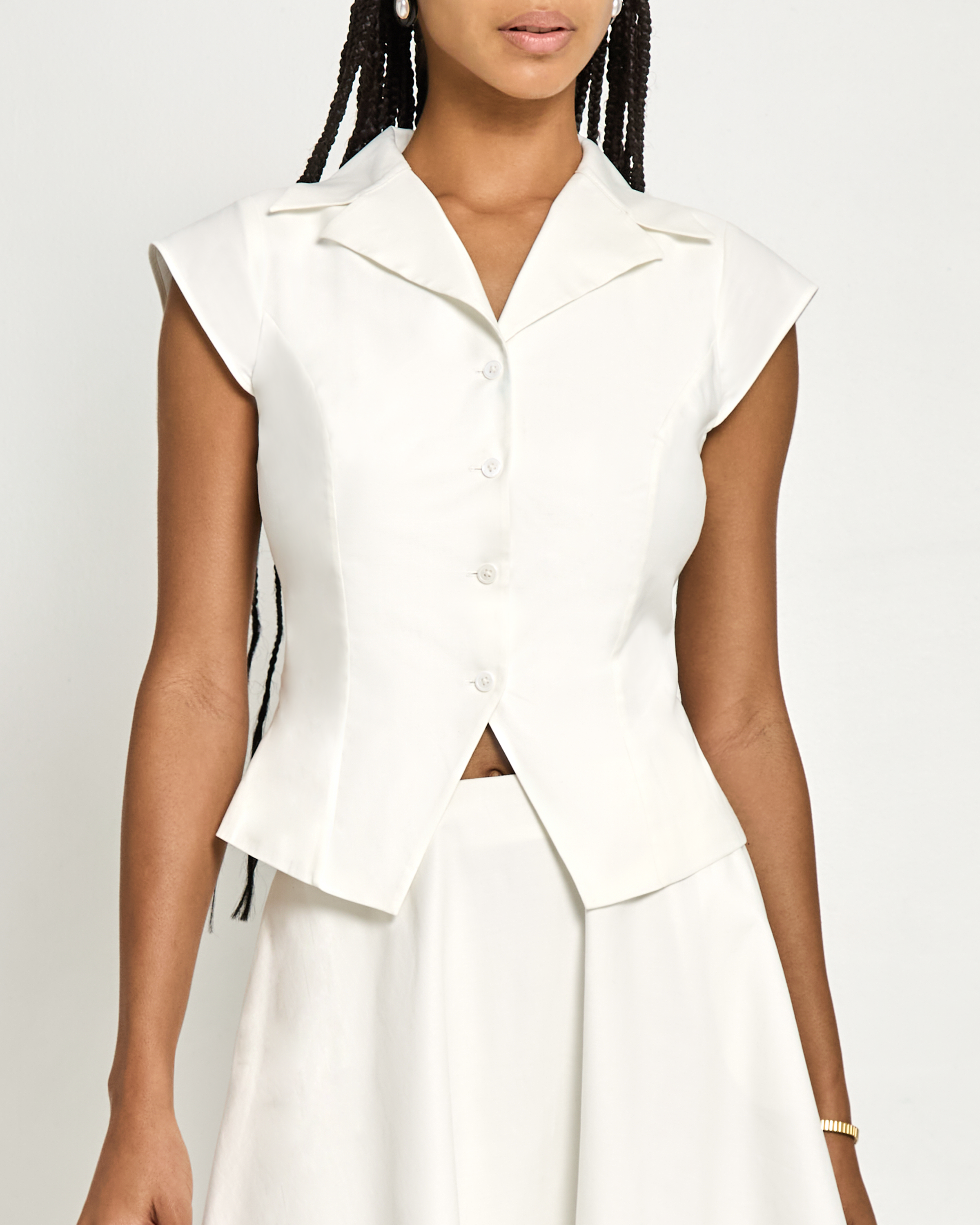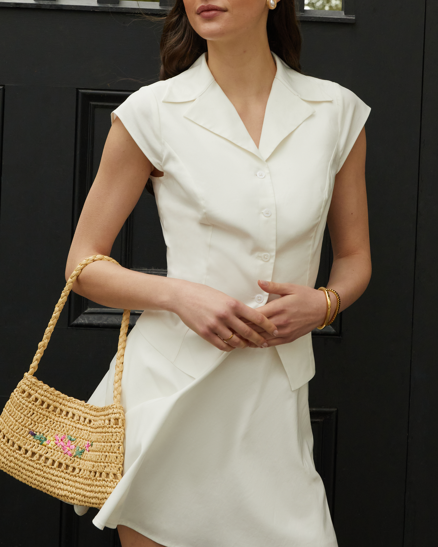 Made with crisp cotton, this set features a cap sleeve, classic collar, and a button-up design. The adorable mini skirt adds a playful touch to this sophisticated ensemble.