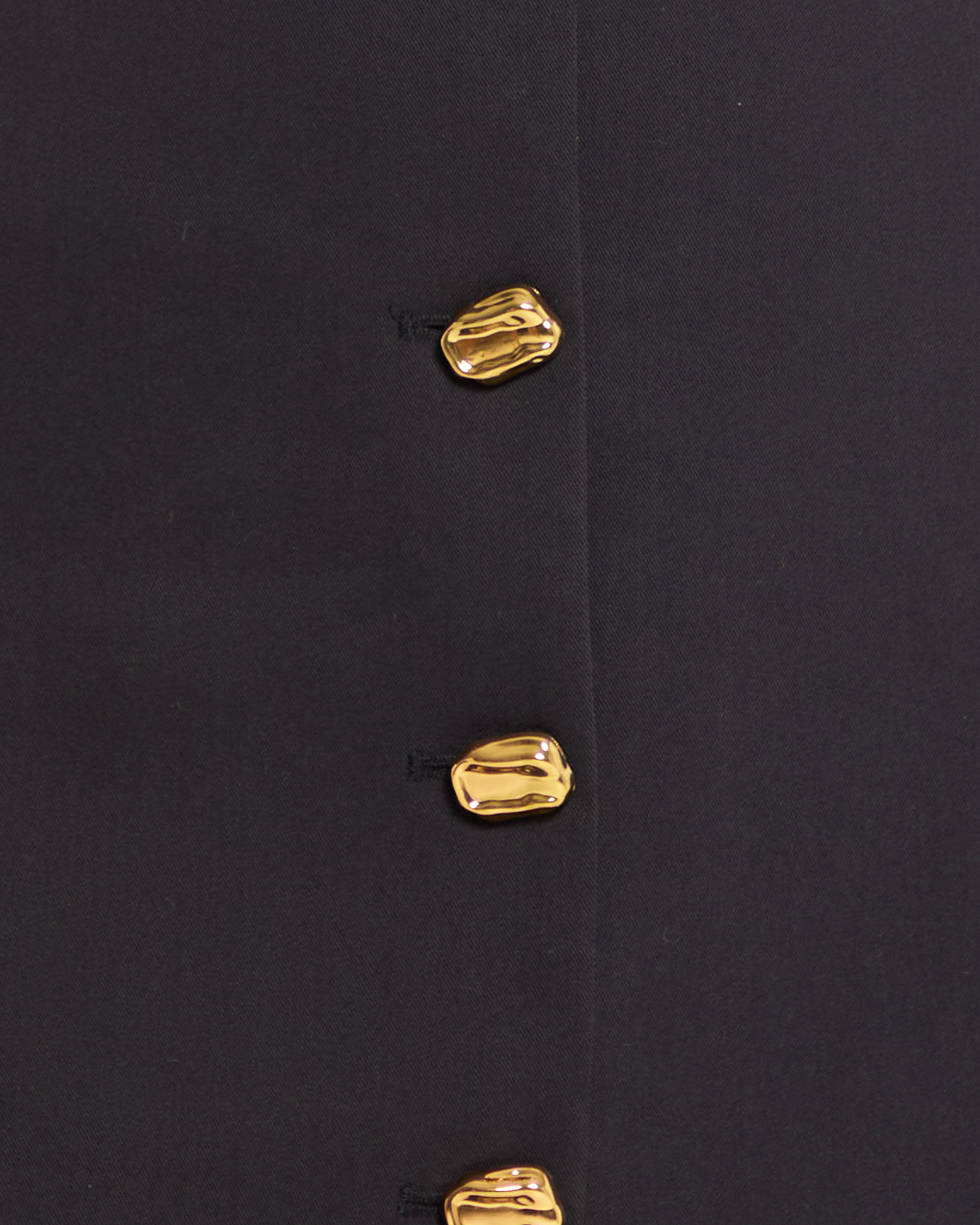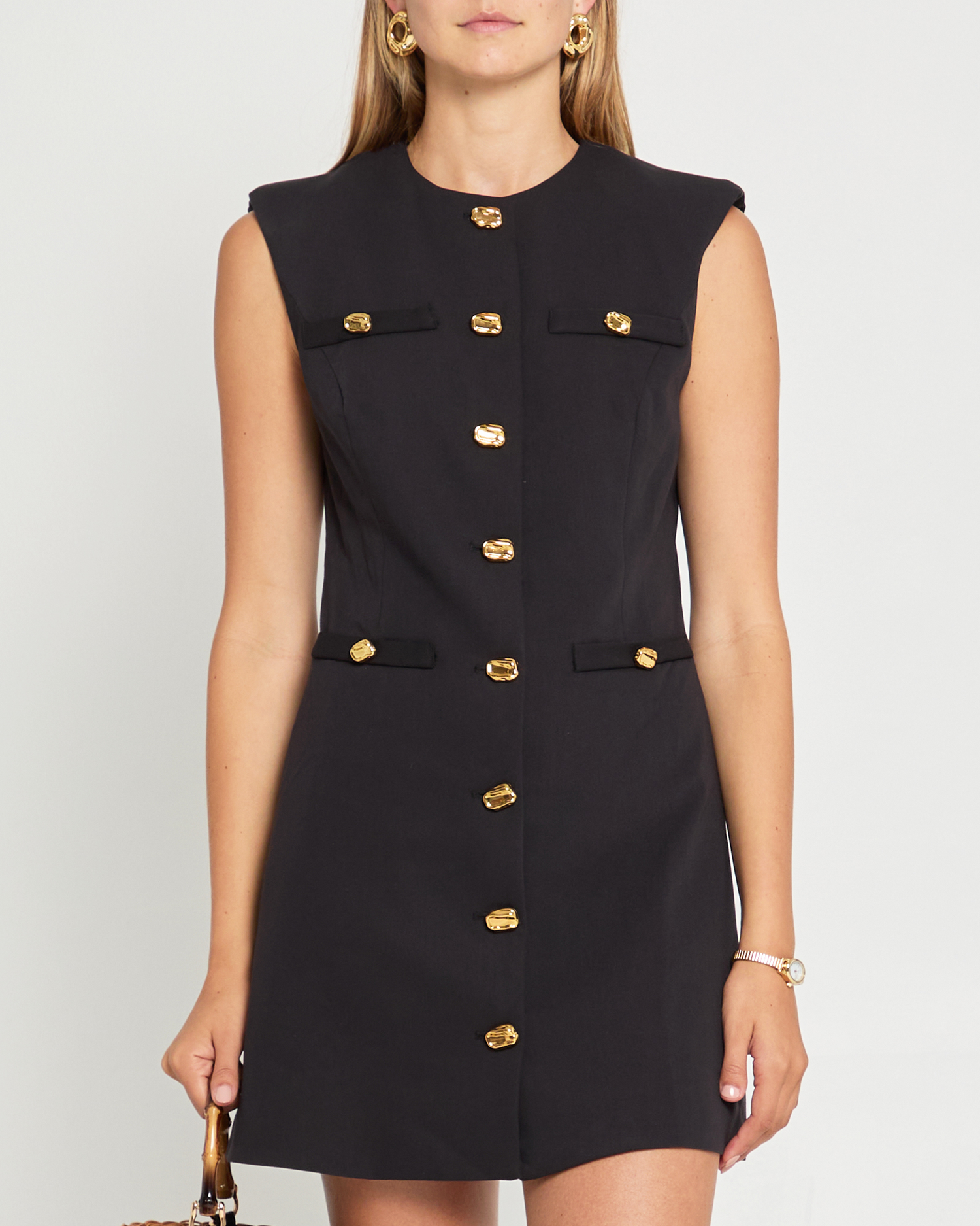Introducing the Luella Dress - a chic and sophisticated addition to your wardrobe. Its structured design and vest silhouette are adorned with sculptural gold buttons, adding a touch of luxury.