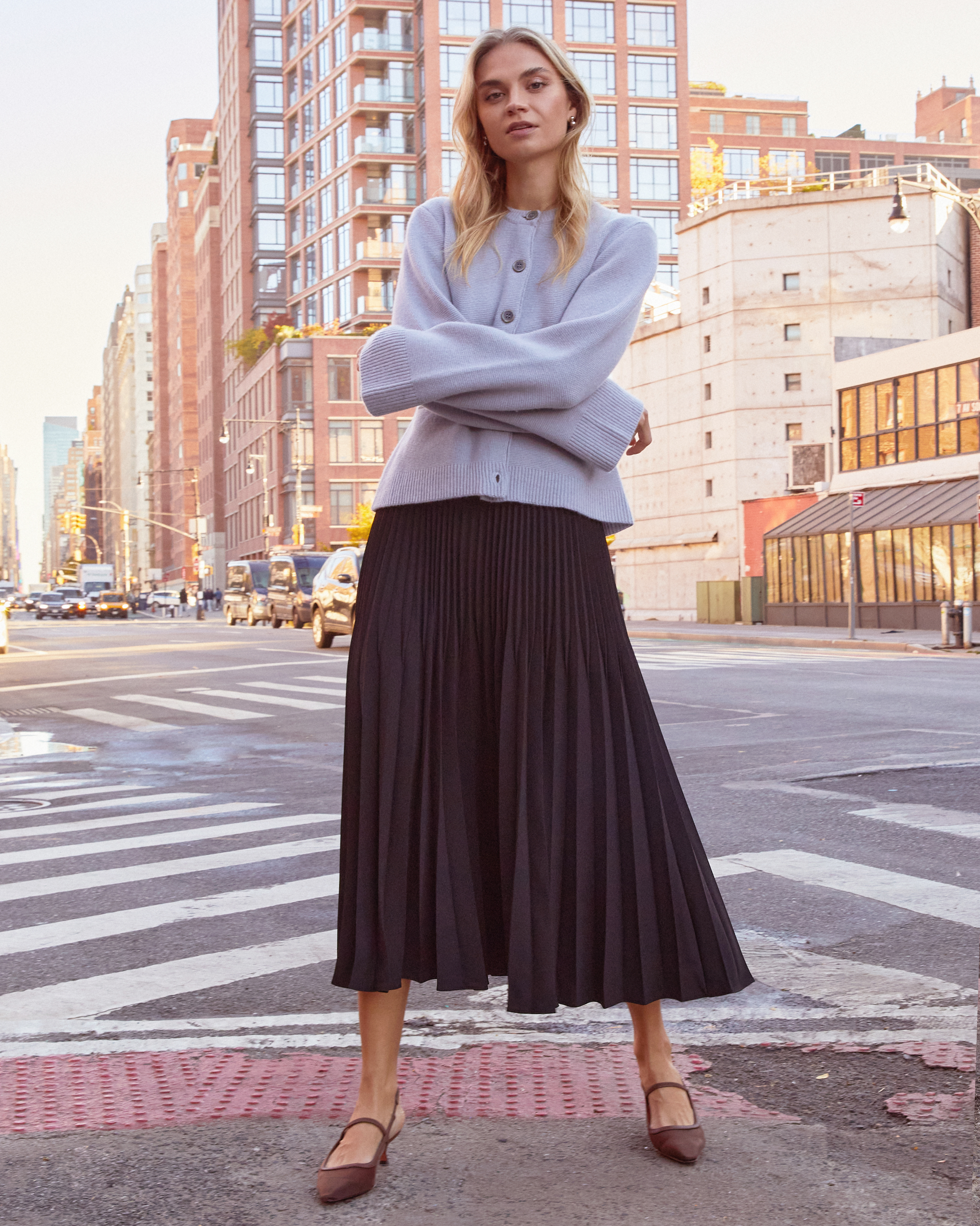 Crafted from gorgeous thick crepe material, the Eman Skirt is both comfortable and elegant. Its elastic waist ensures a perfect fit, while the flowy design and beautiful crisp pleats add a touch of grace to any outfit.