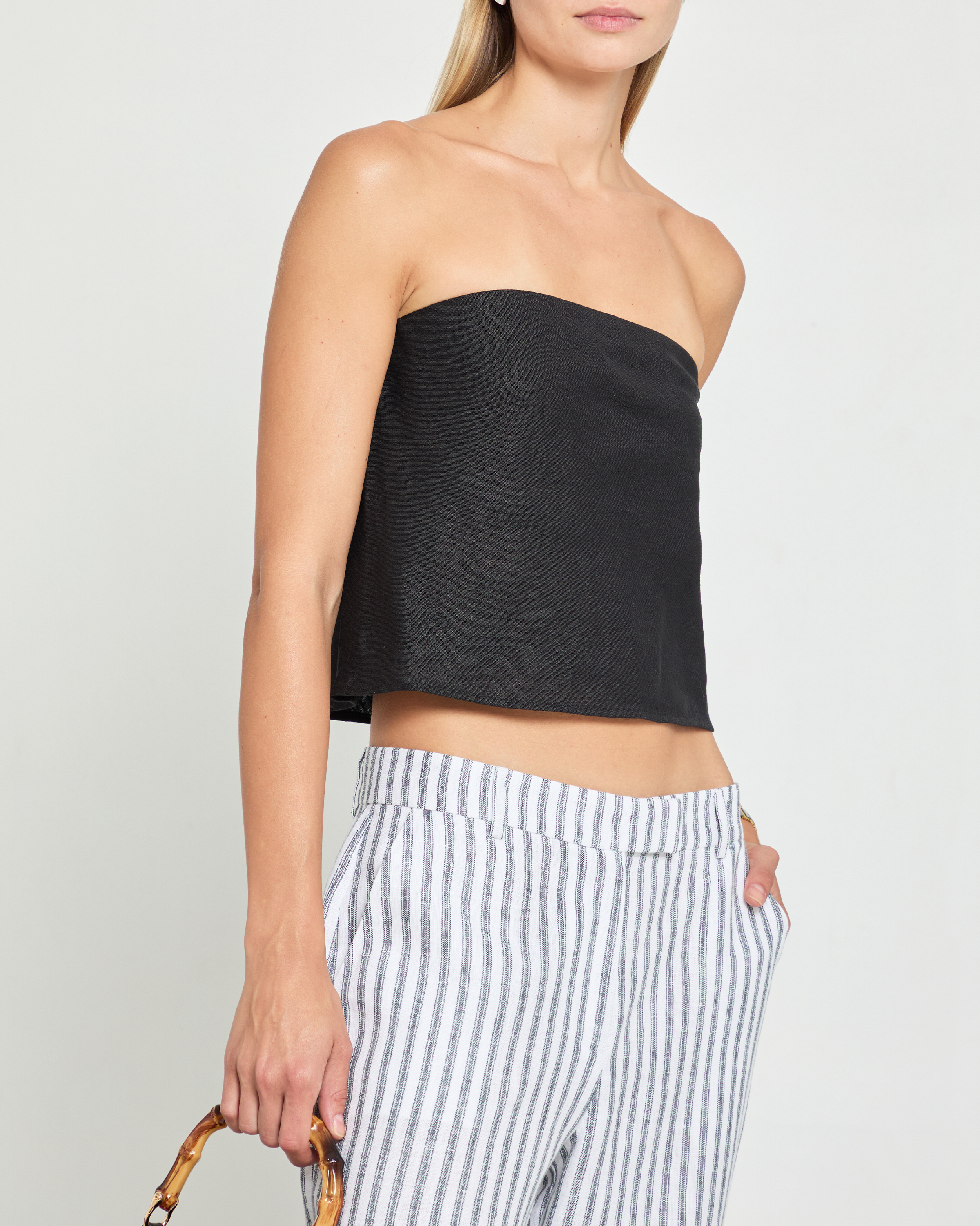 Expertly crafted from high-quality linen, the Emelie Linen Top is the epitome of effortless style. Its strapless design and relaxed fit give it a chic and easy look, perfect for any occasion. Elevate your wardrobe with this must-have essential.