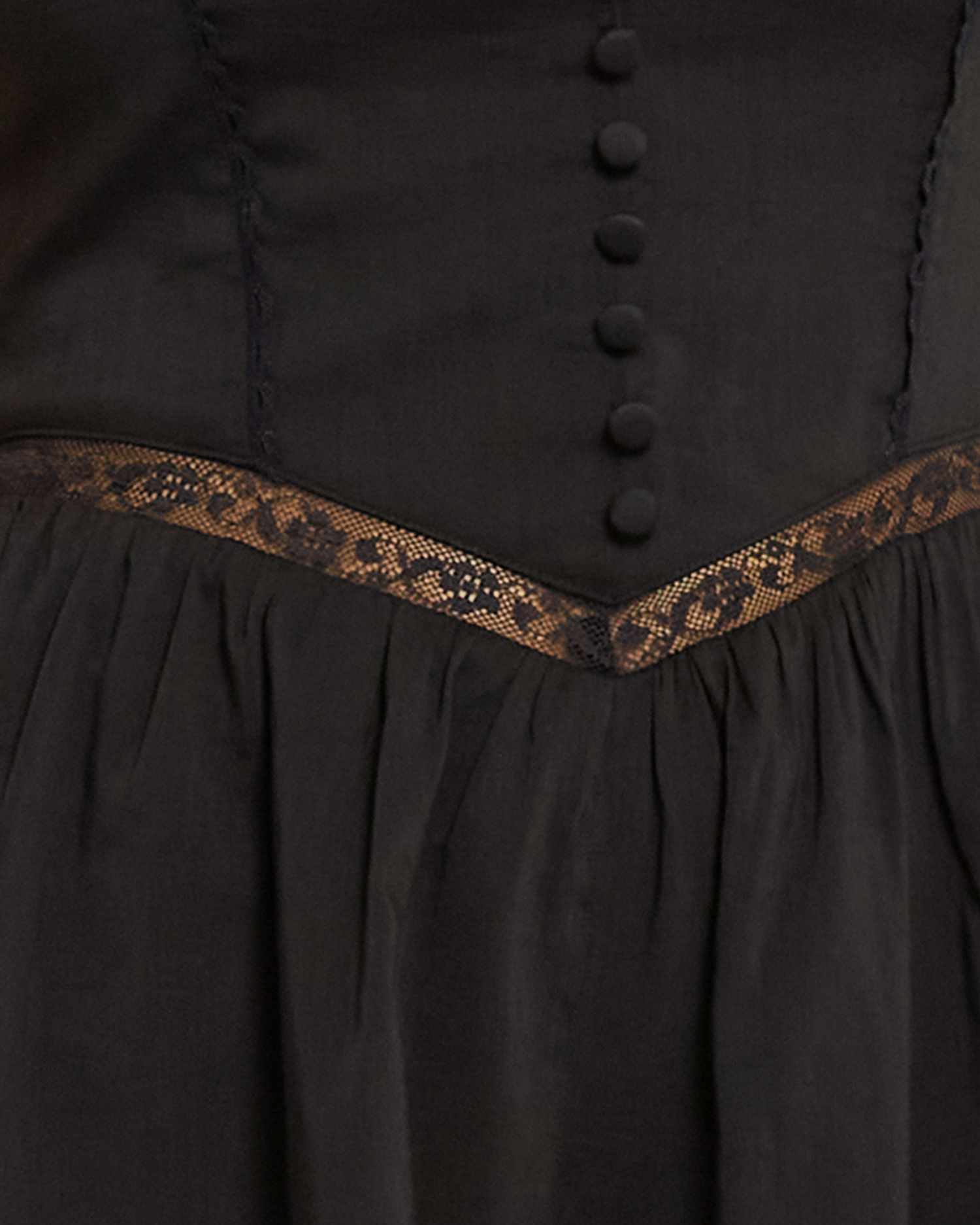 The Federica Romper features delicate buttons, charming trim, and sheer lace detailing. The flowy shorts make this style both easy and adorable, for the perfect flirty piece.