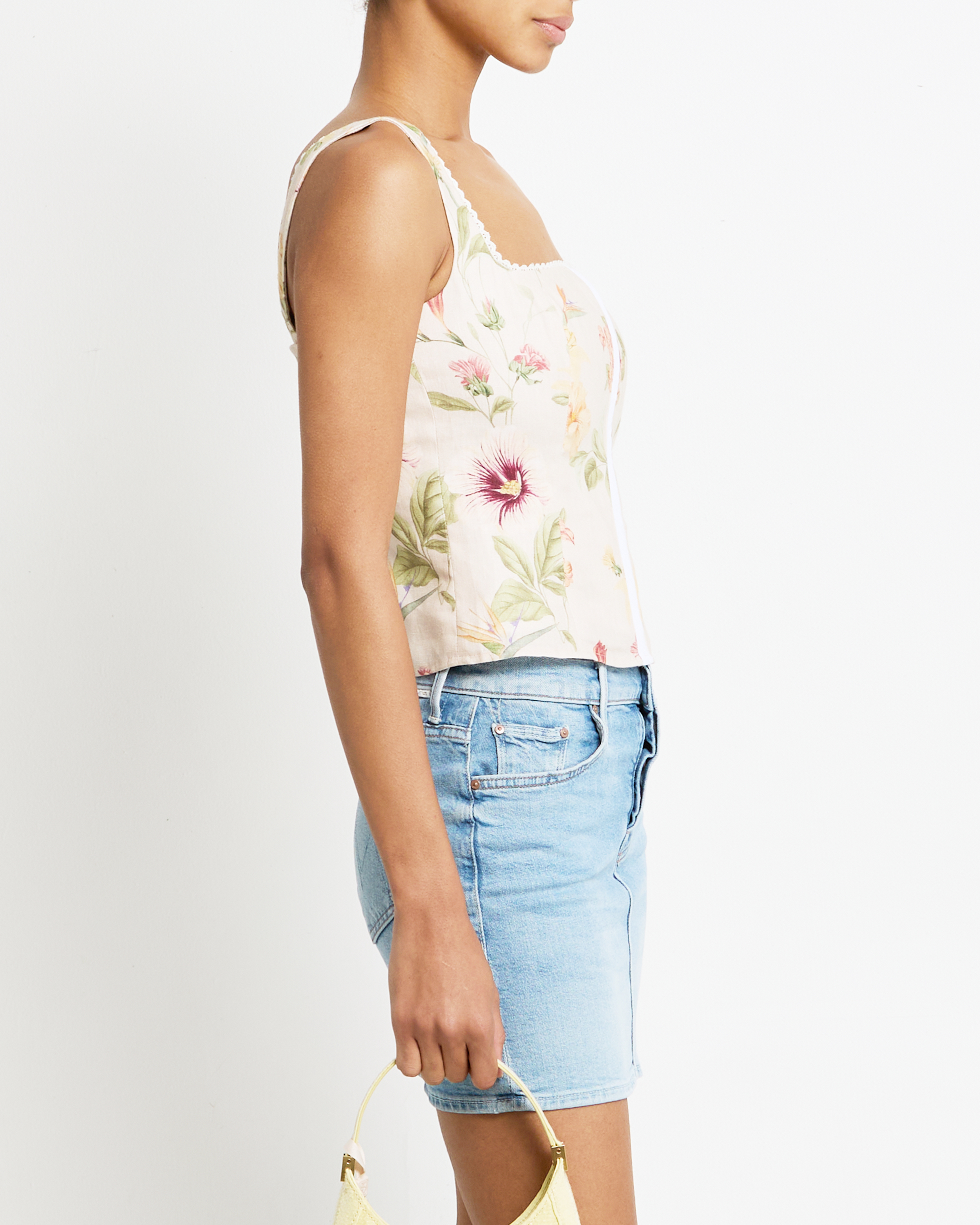 Expertly designed for comfort and style, the Halley Linen Top features delicate lace trim and thick straps for a secure fit. The fitted bodice flatters your figure, while the front fastener details add a touch of sophistication. Elevate your wardrobe with this versatile and chic top.