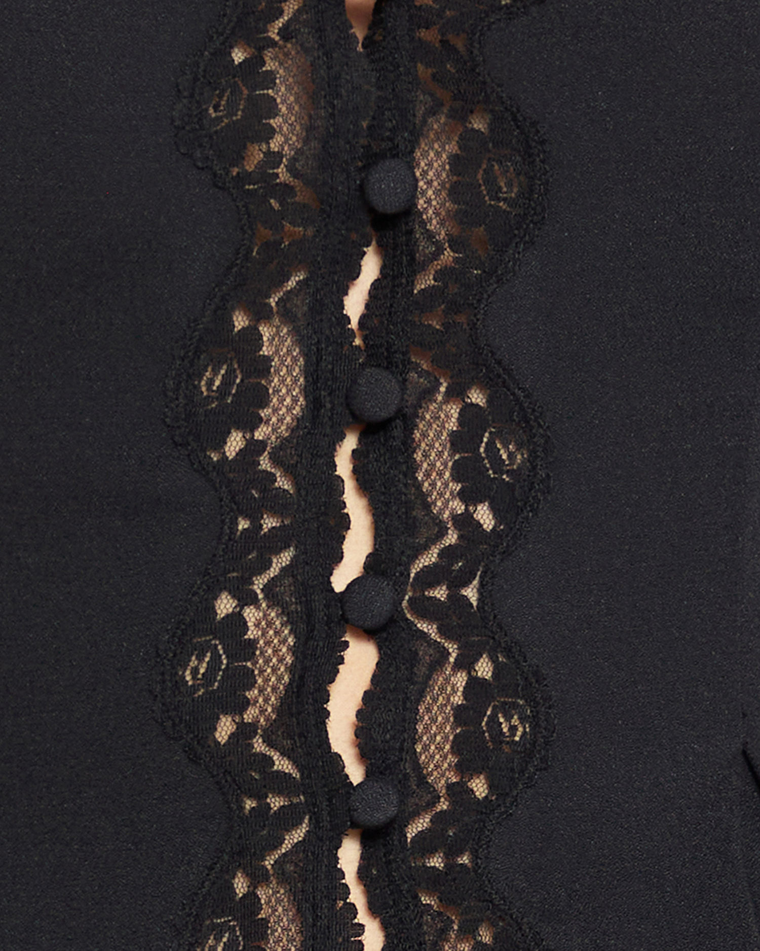 The Jacinta Top features a romantic lace trim, delicate buttons, and a bow in the back for an easy and adjustable fit. Made from a light and comfortable crepe material, this top is both stylish and comfortable, perfect for any occasion.