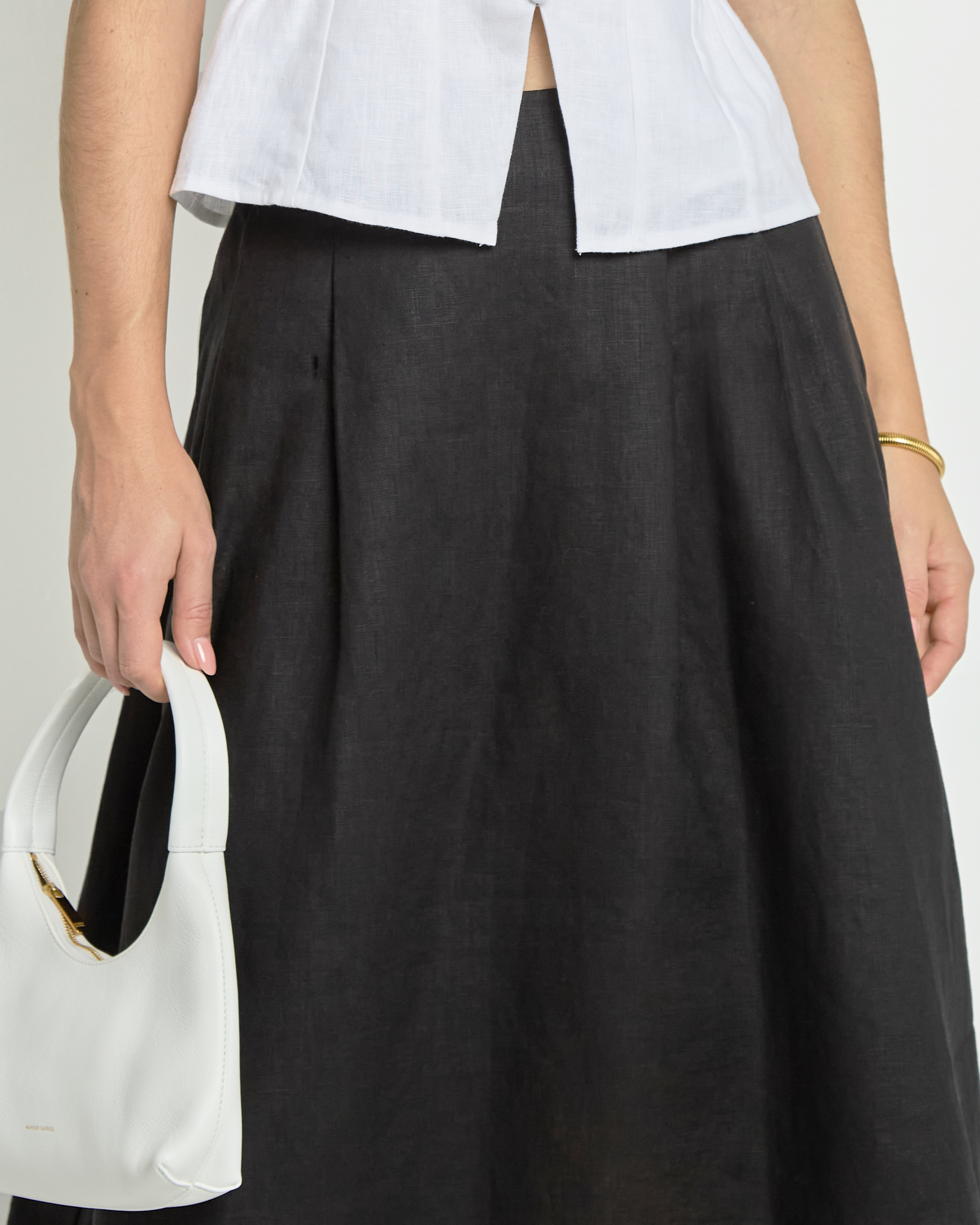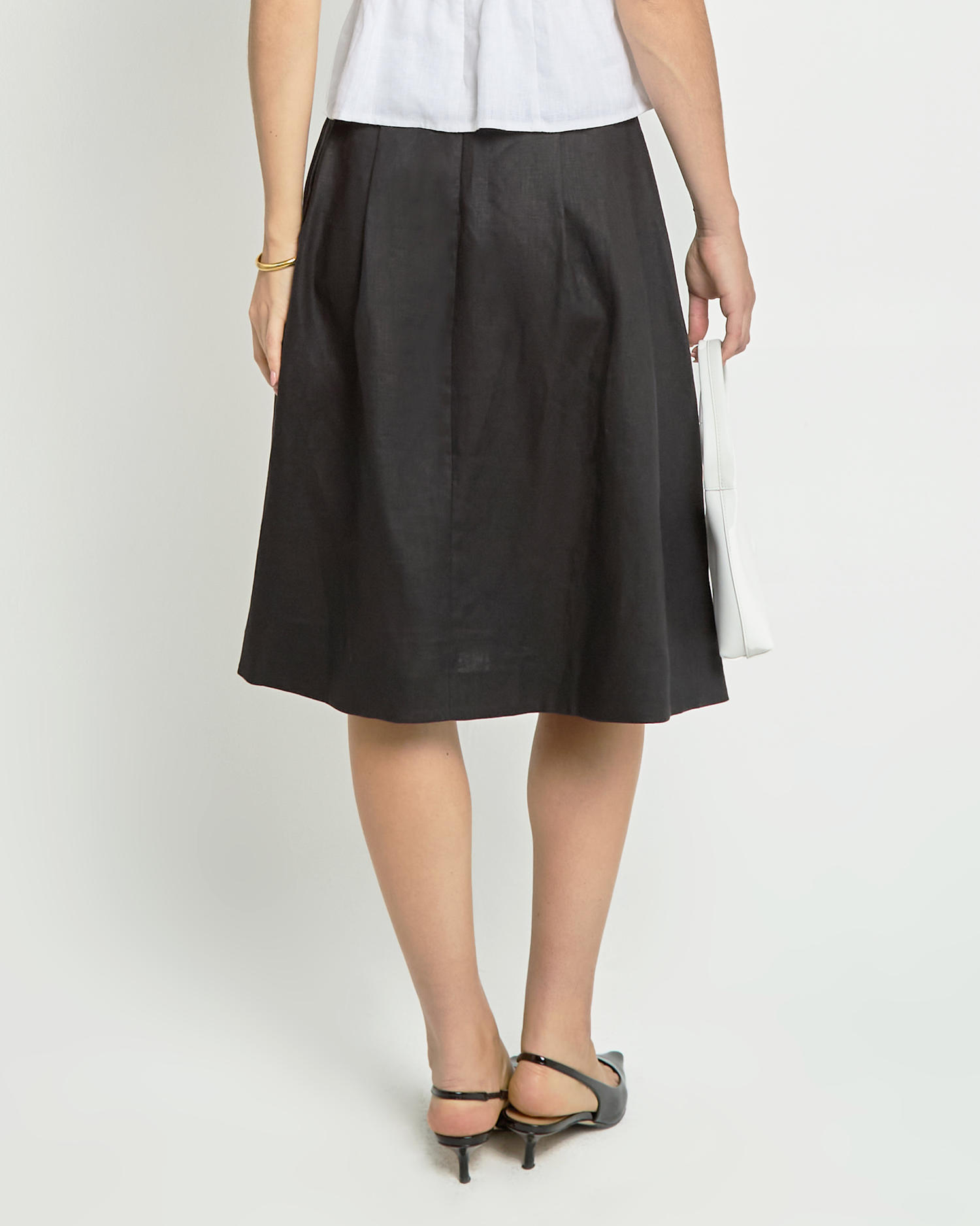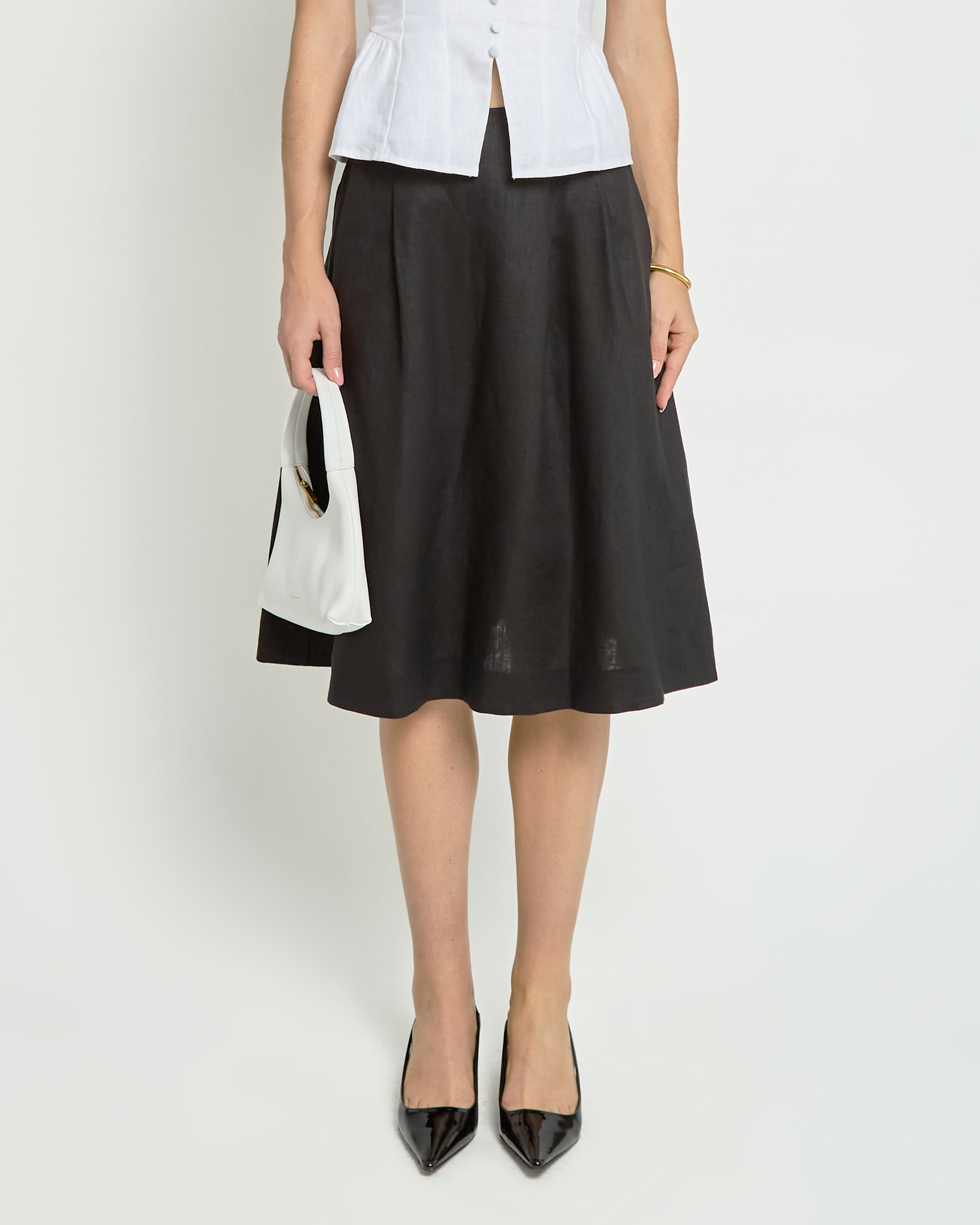 Crafted from luxurious linen, the Lucie Linen Skirt is a timeless staple for any wardrobe. Its versatile midi length allows for dressing up or down, making it a classic piece that can be worn for any occasion.