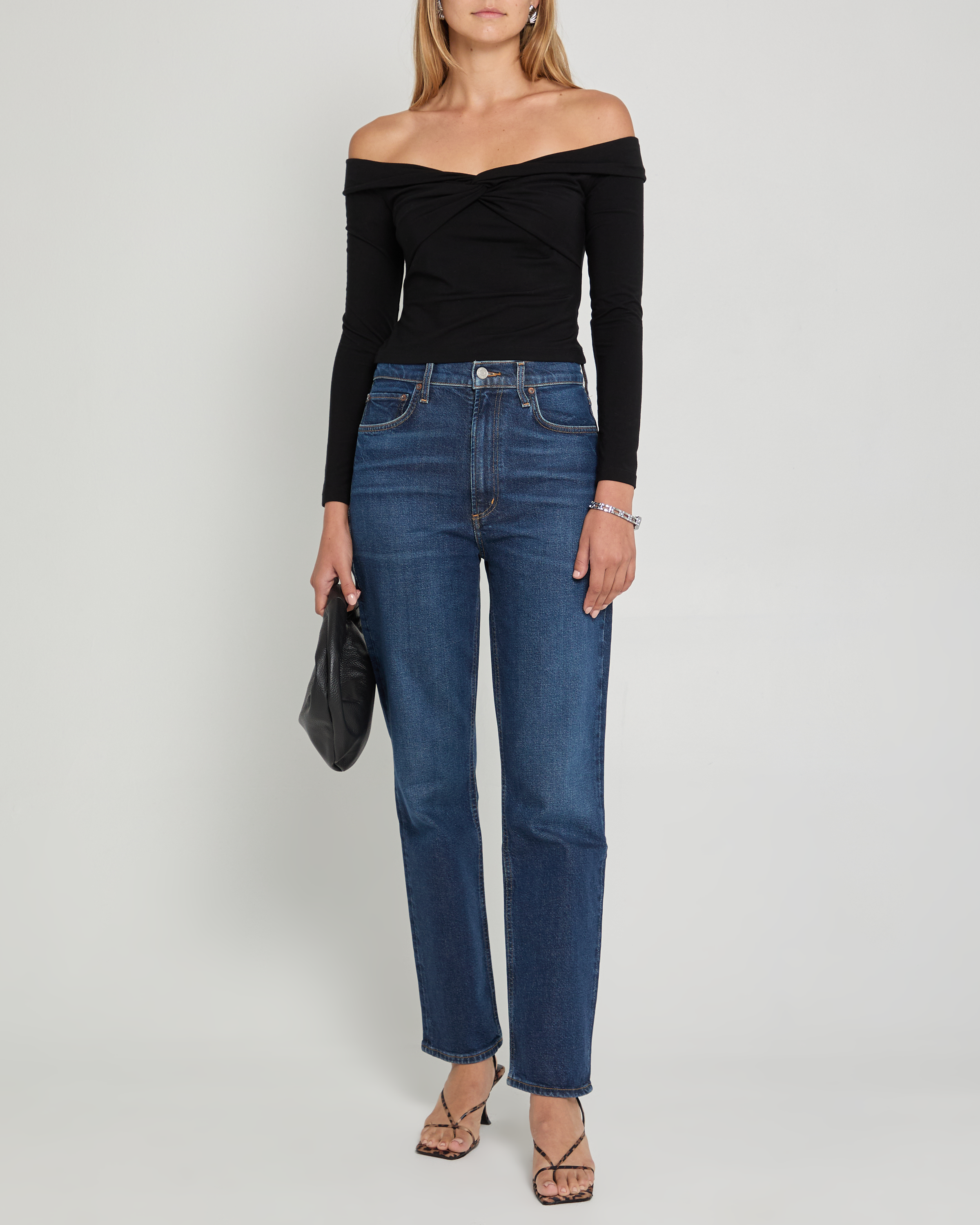 Discover effortless style with the Miya Top - a sleek and chic off-the-shoulder design that flatters your figure. Made with soft and stretchy material, this black long sleeve top offers both comfort and style. Its fitted silhouette will make you feel confident and stylish, no matter the occasion.