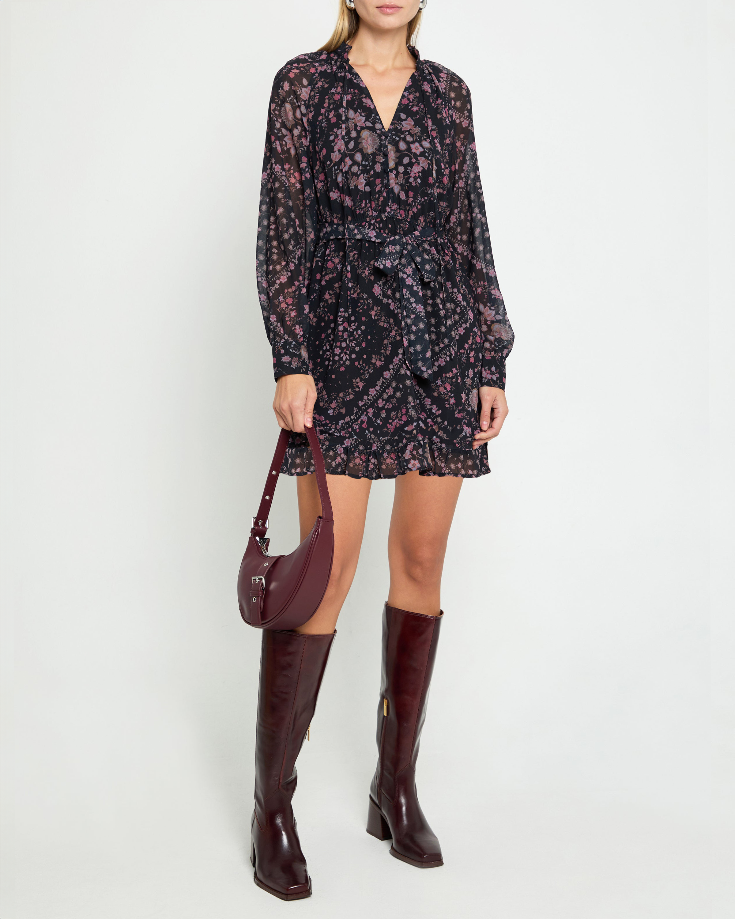 Introducing the Nitta Dress. This dress features long, sleeves and a pretty printed chiffon with delicate floral details. Perfect for any occasion, this dress is both elegant and comfortable. Elevate your fashion game with Nitta.