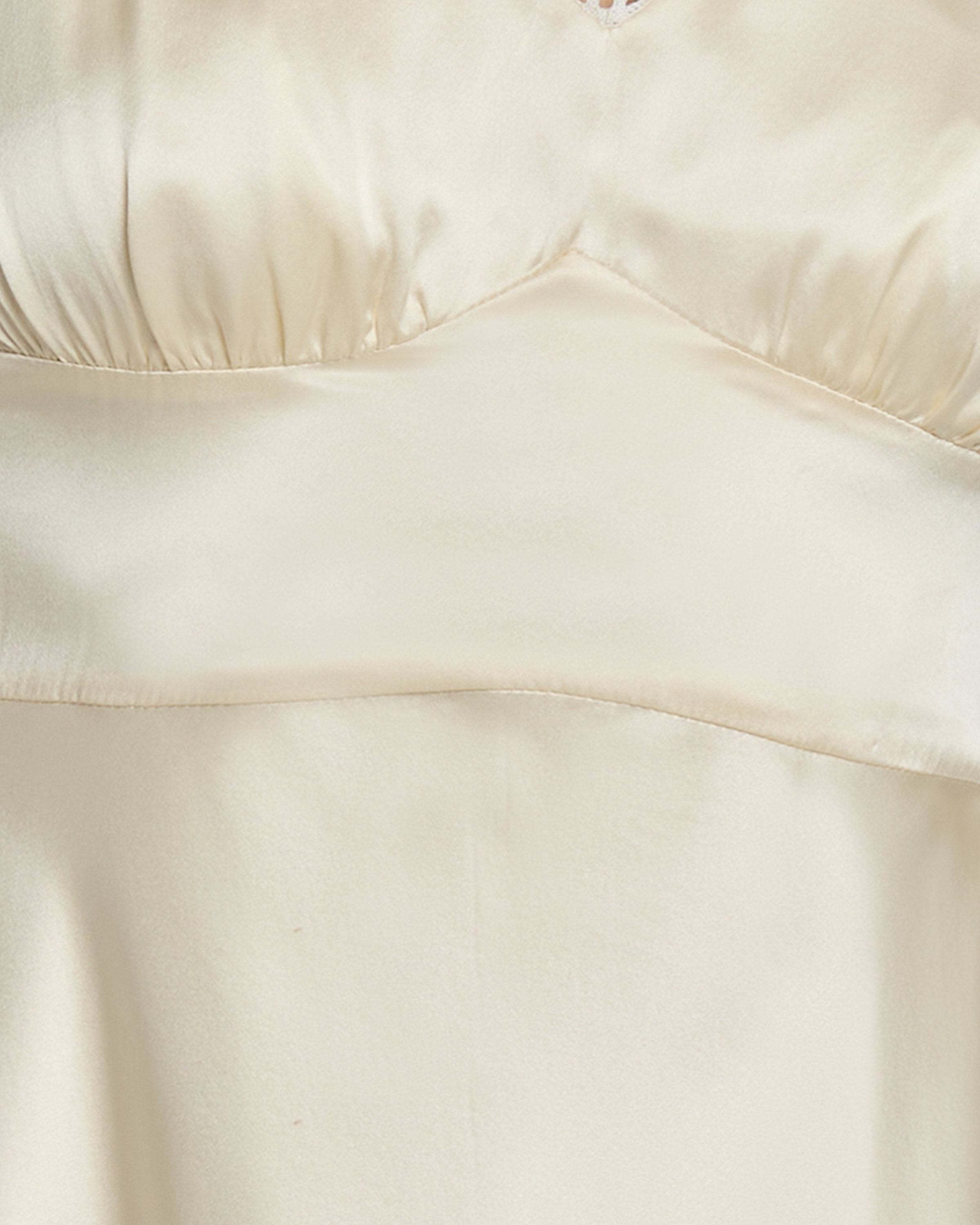 The Tamia Dress, crafted with a silky material, features elegant cap sleeves and a flirty mini length. The v-neckline and charming lace trim add a touch of sophistication to complete the look.