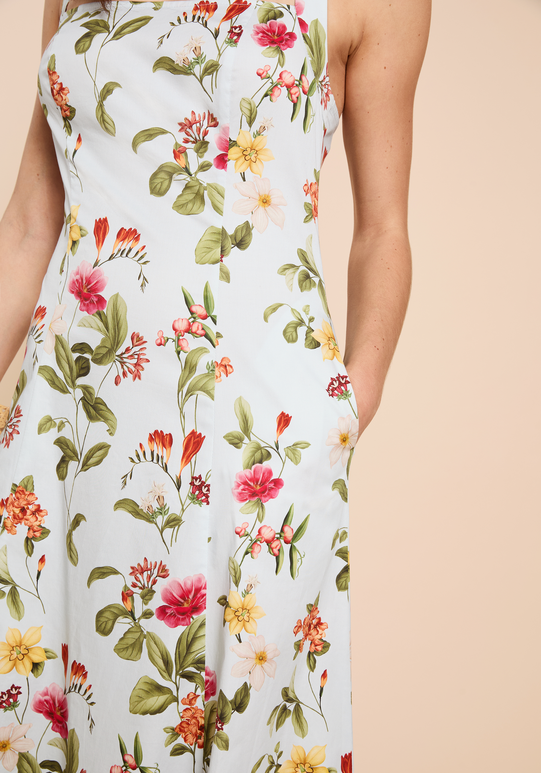The Lior Dress features a fitted bodice paired with an A-line skirt, creating a sleek and flattering silhouette. Its easy adjustable halter necktie ensures a perfect fit, while discreet pockets add practical elegance.
