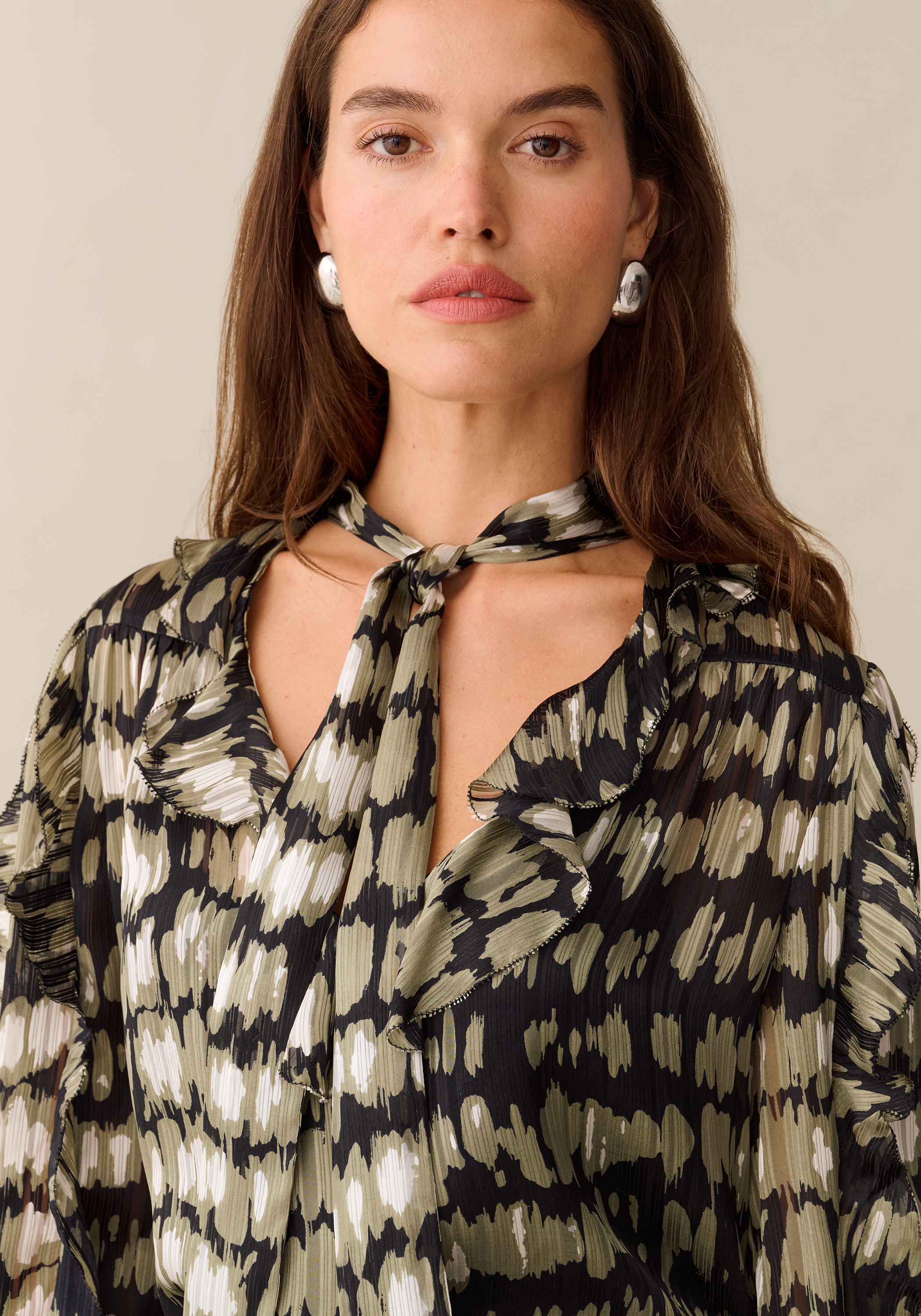 Crafted from 100% silk, the Hollis Silk Top features an exquisite print and delicate ruffle details that elevate its elegance. Its fluttery necktie offers versatile styling options, allowing you to create looks ranging from polished to playful with ease.