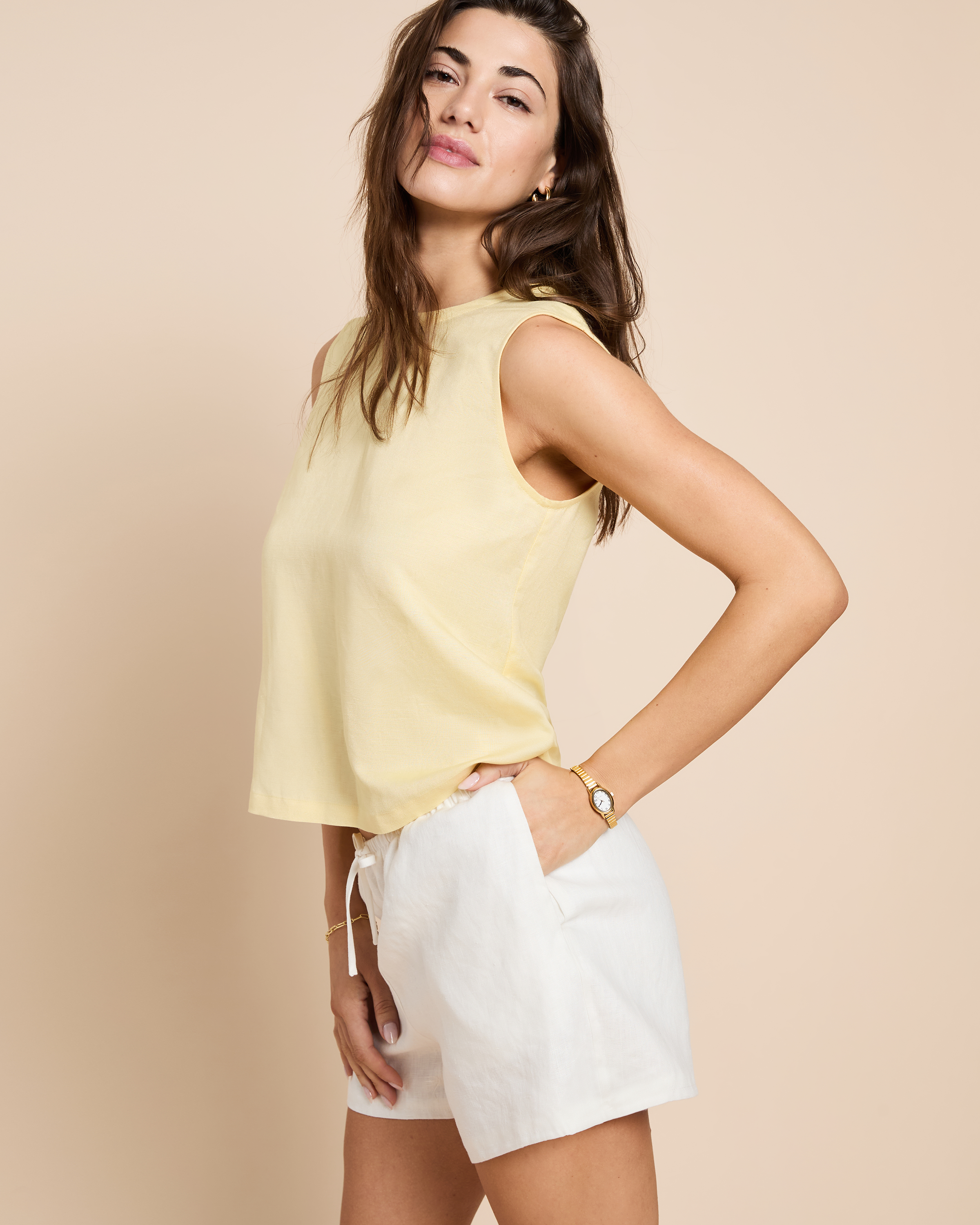 The Ona Top is a must-have for your everyday wardrobe. Made with a light linen blend, it is both easy and comfortable to wear. The high neckline adds a touch of elegance, while the gorgeous butter yellow color is perfect for sunny days.