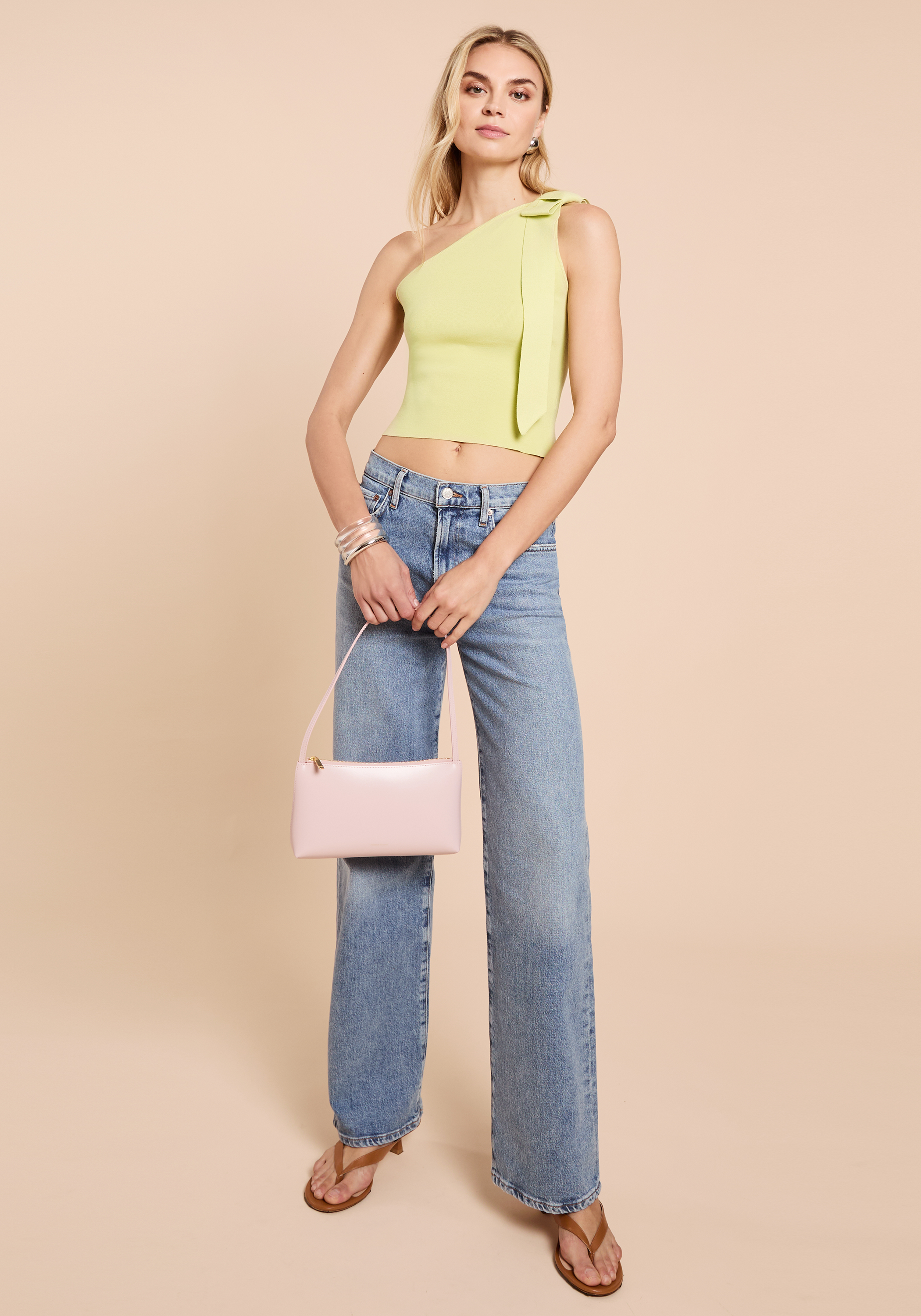 Crafted from a soft, stretchy smooth knit, the Simone Top offers a fitted silhouette that contours comfortably to the body. Its asymmetrical one-shoulder neckline is accented with a chic bow detail while the top’s soft green hue brings a fresh, playful vibe.