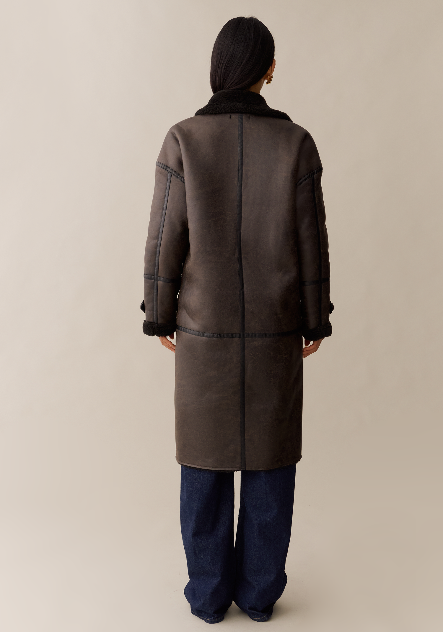 Experience effortless style and warmth with the Rowena Coat. Crafted from luxurious faux suede in a rich brown hue, this coat features a cozy lining that ensures comfort without bulk. Perfect for elevating your wardrobe with minimal effort, it combines fashion and function seamlessly.