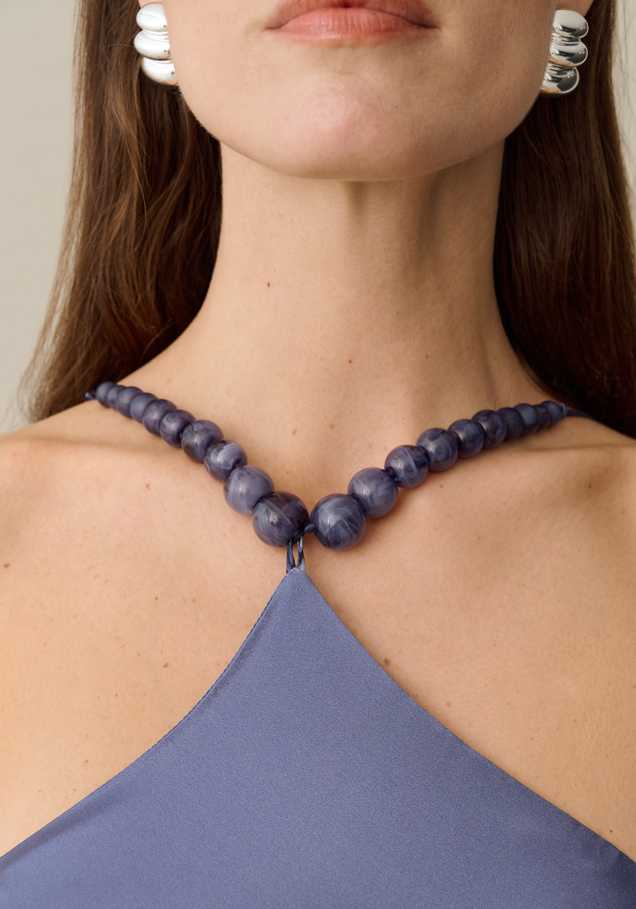 The Auli Dress features a luxurious silky fabric that drapes elegantly for a sleek, chic silhouette. Its standout detail is the beaded embellishment along the neckline, adding a unique and sophisticated touch.