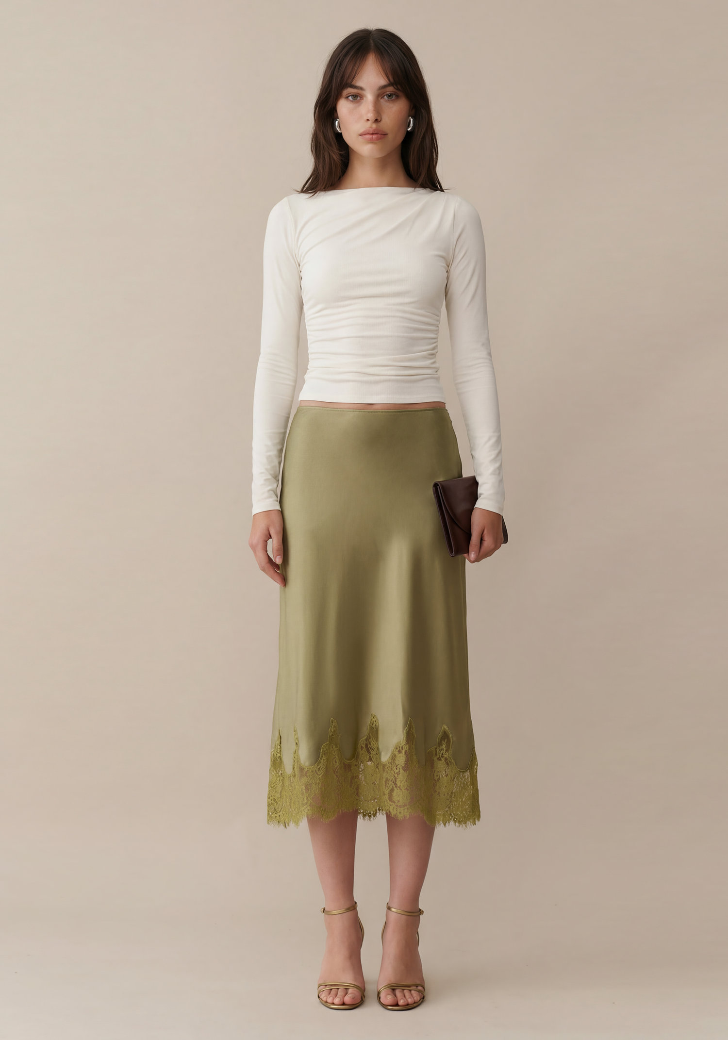 The Avery Skirt is done in silky fabric crafted into a sleek slip silhouette. Romantic lace trim dons the hem while its easy elastic waist ensures comfortable wear, making it a versatile piece for sophisticated, effortless styling.