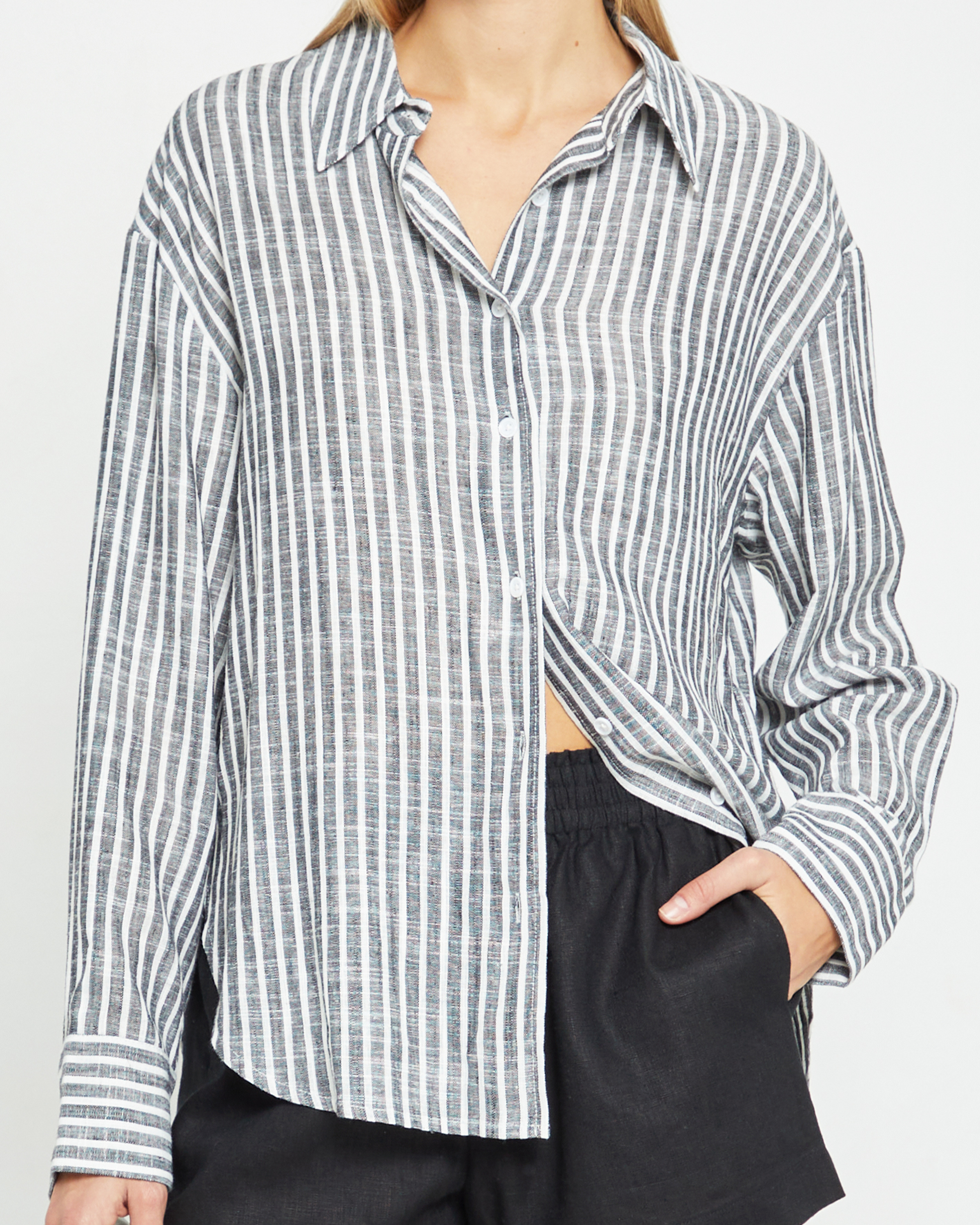 Love the oversized fit. Nice sturdy linen but not too heavy. Looks great with shorts!
