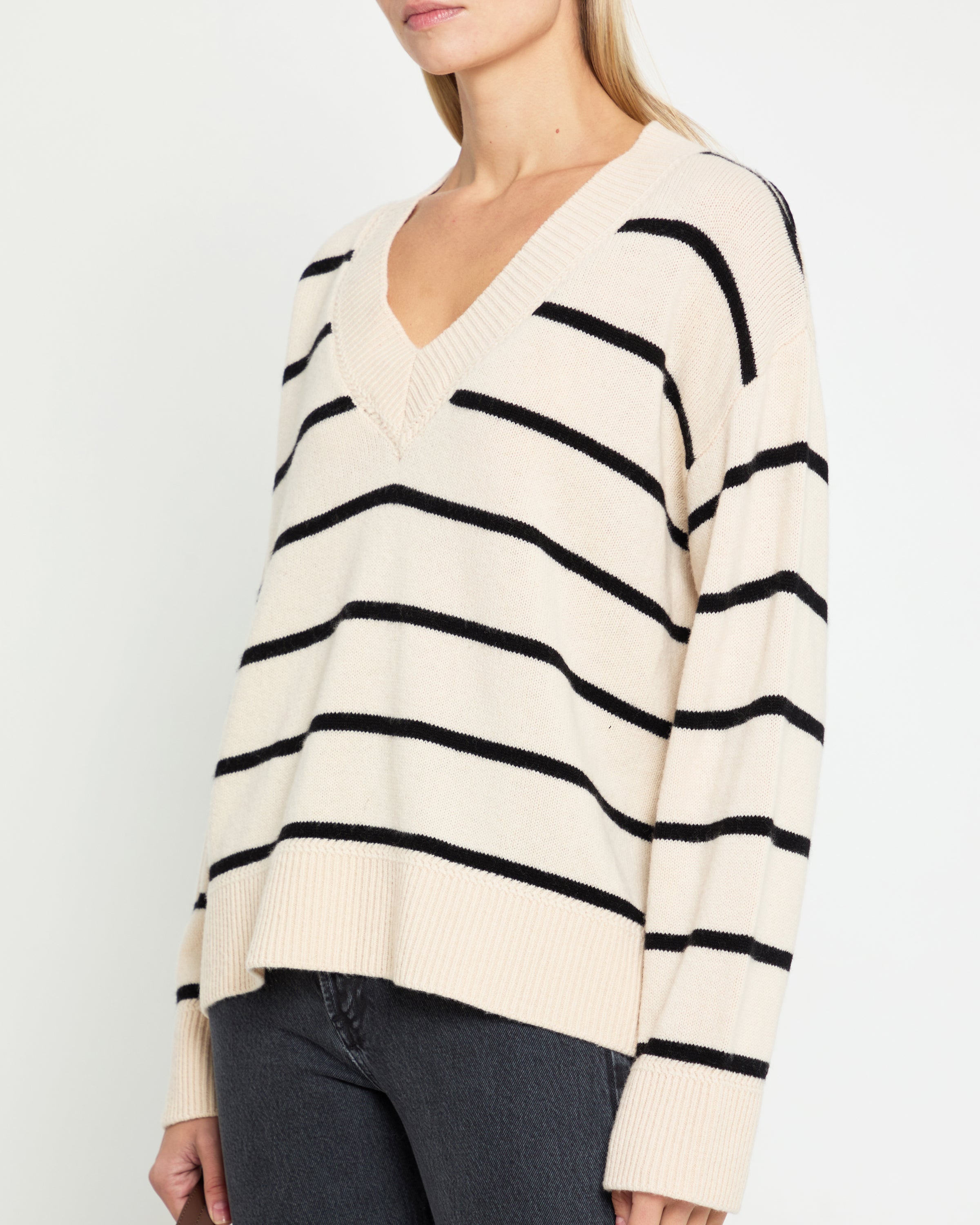 Expertly crafted from luxurious 100% merino wool, the Brenna sweater boasts a stunning and soft texture. Its relaxed v-neckline and large, comfortable fit make it a staple piece for any wardrobe. Stay cozy and stylish with this must-have sweater.