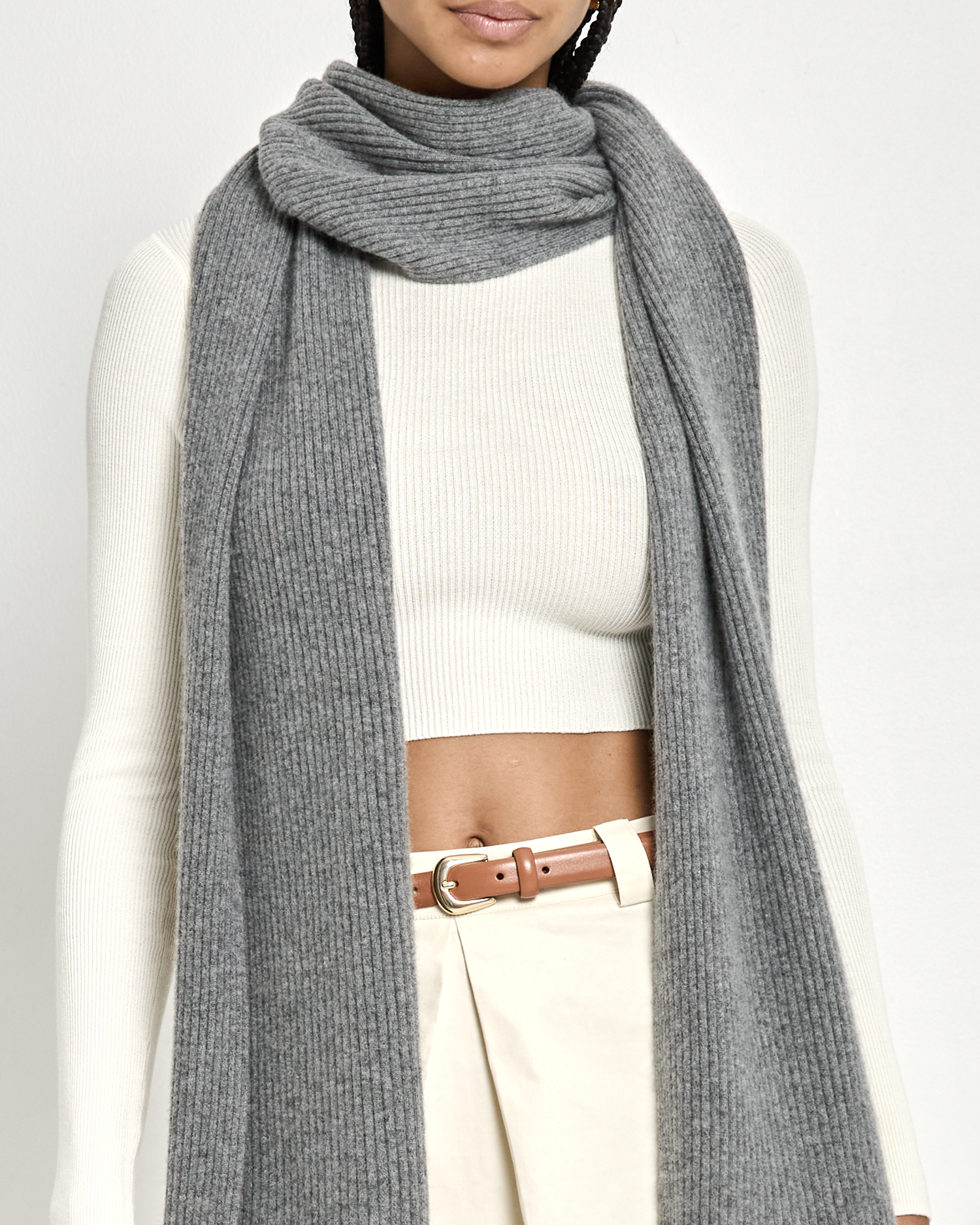 Stay stylish and warm with our Cameron Wool-Cashmere Scarf. Made from a luxurious cashmere wool blend, this long scarf features a ribbed knit for added texture and versatility. Perfect for staying cozy on chilly days.