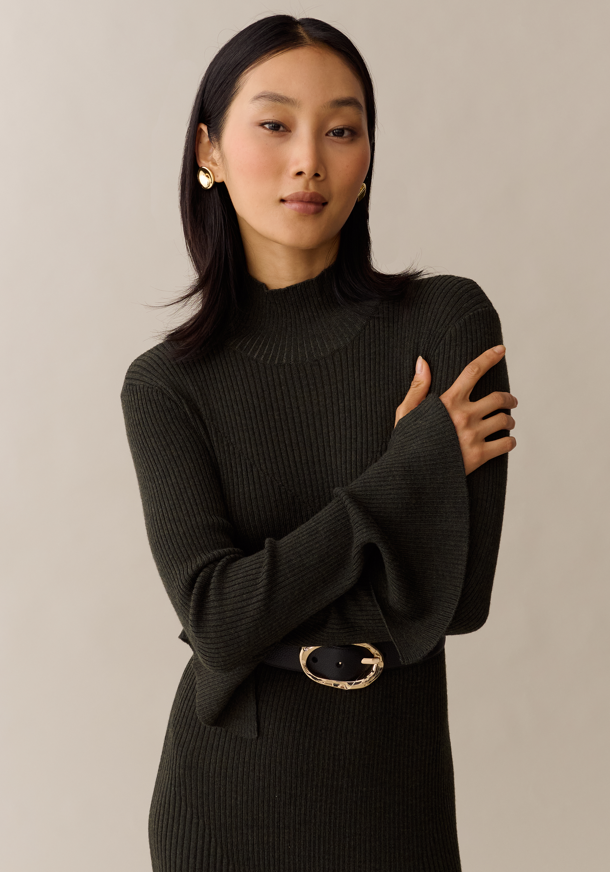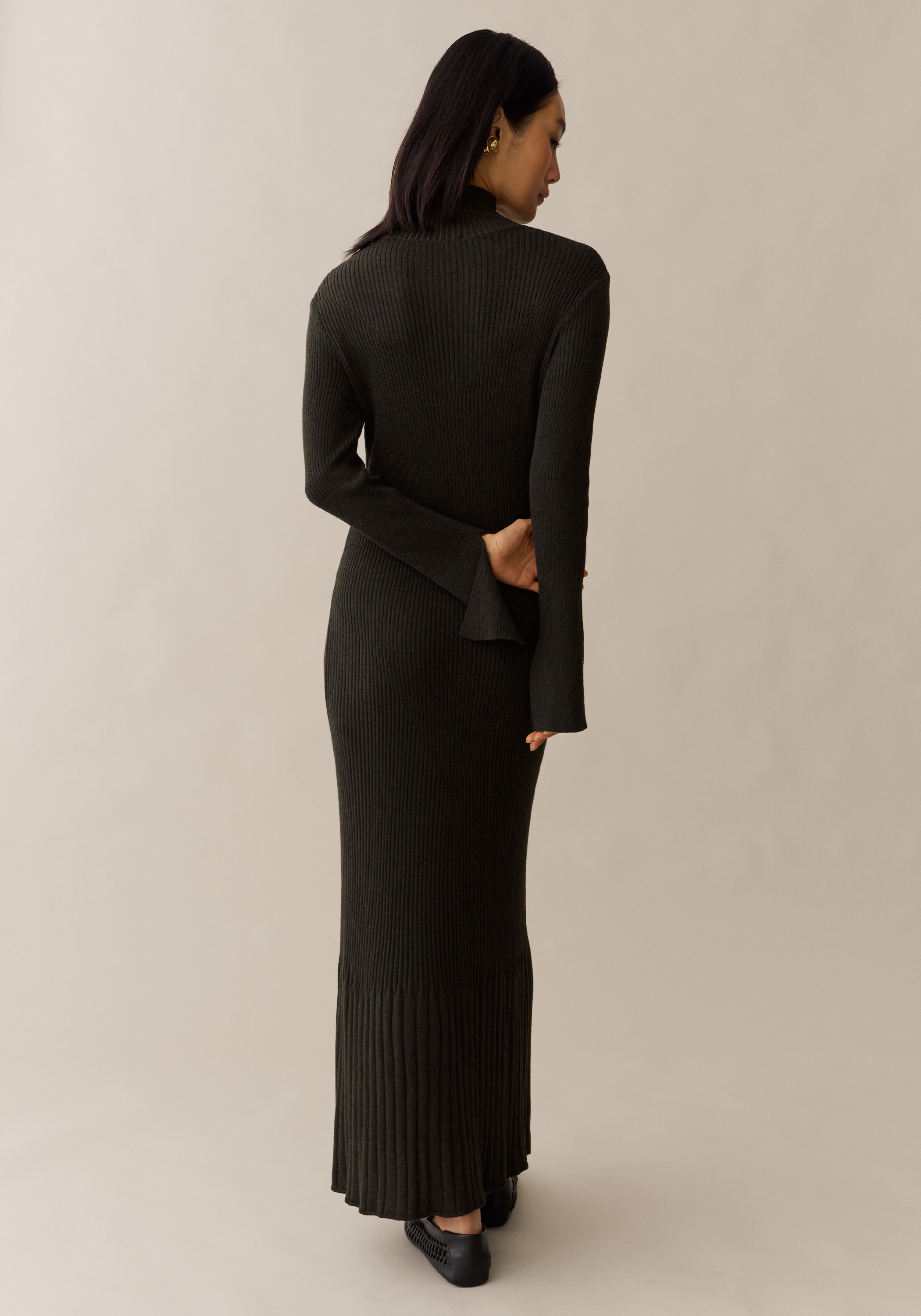 Effortlessly sophisticated, the Charlotte Knit Dress boasts a mock neck, long sleeves, and ribbing for a fitted look. Made for comfort, this maxi dress is perfect for any occasion. Stay chic and comfortable with this versatile piece.