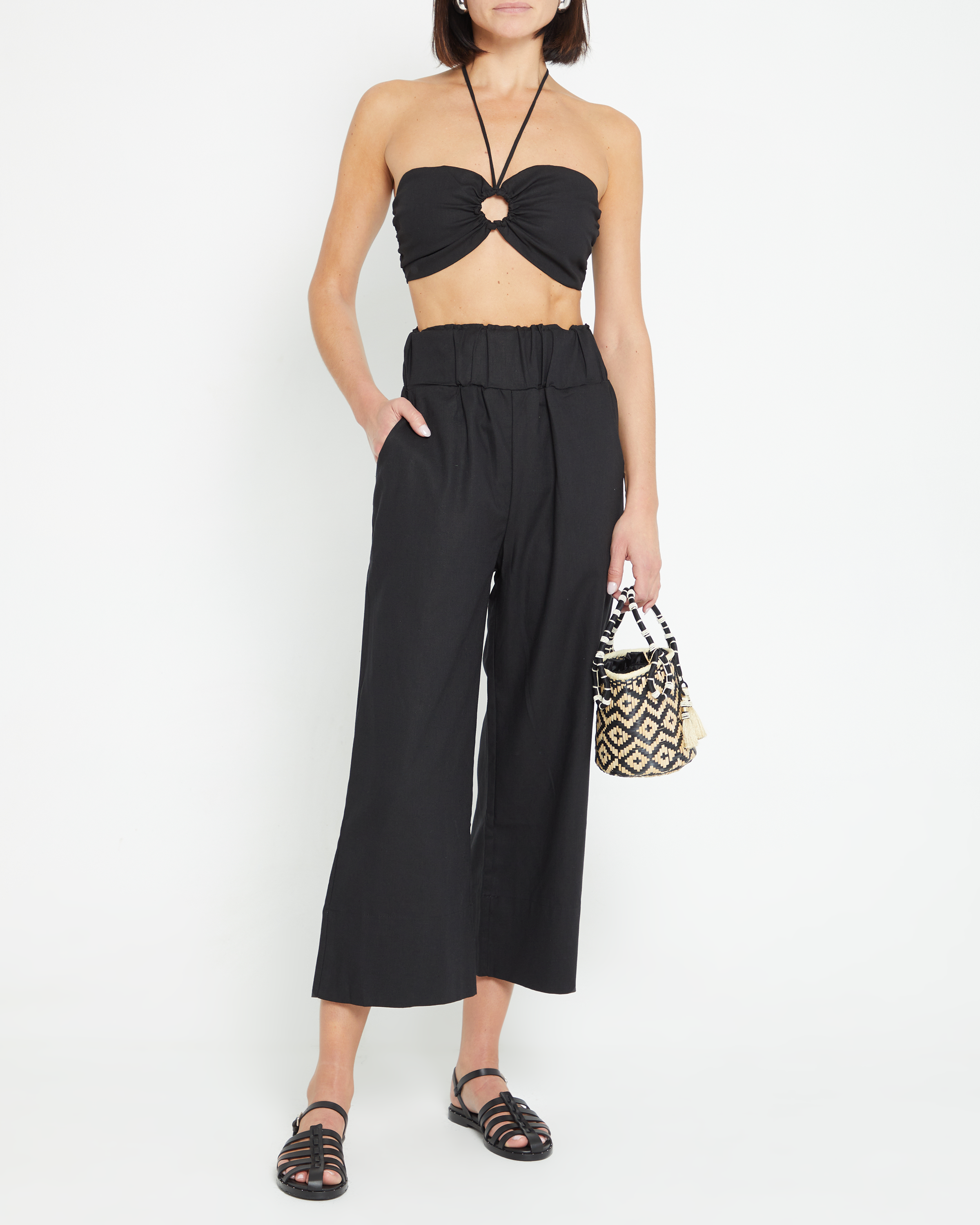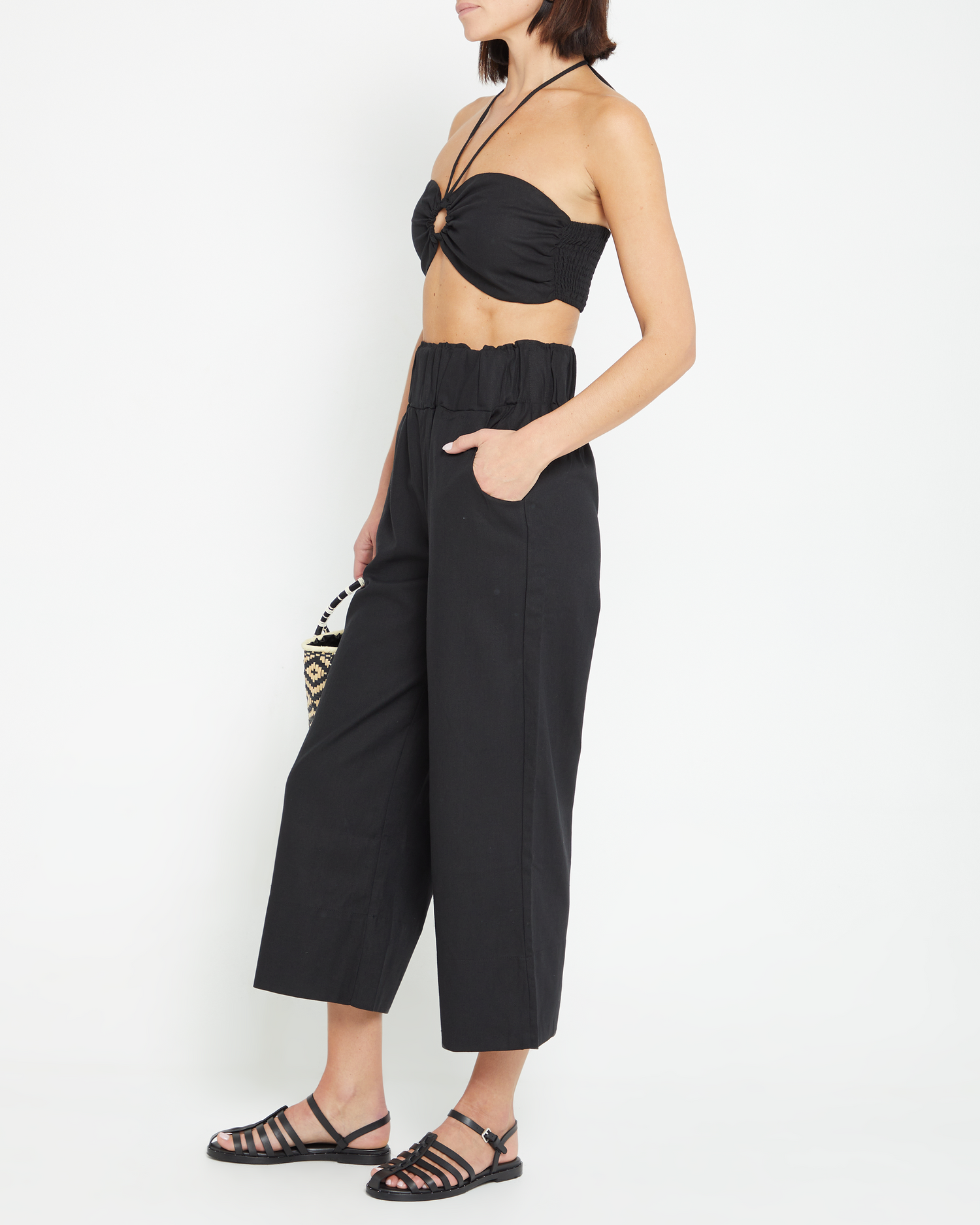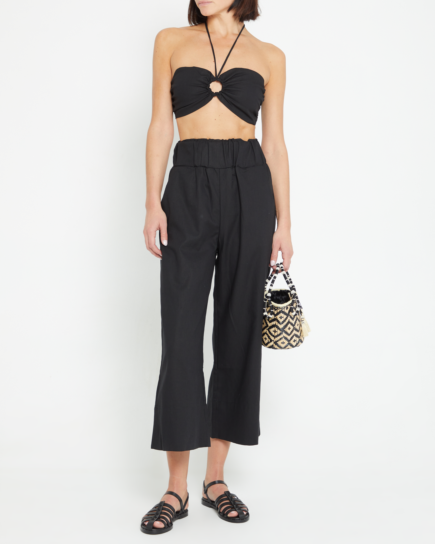 This set features a festive halter crop top with a keyhole detail. Designed for comfort and style, the snug-fitting elastic waistband flatters any figure, making this the perfect outfit for any occasion.