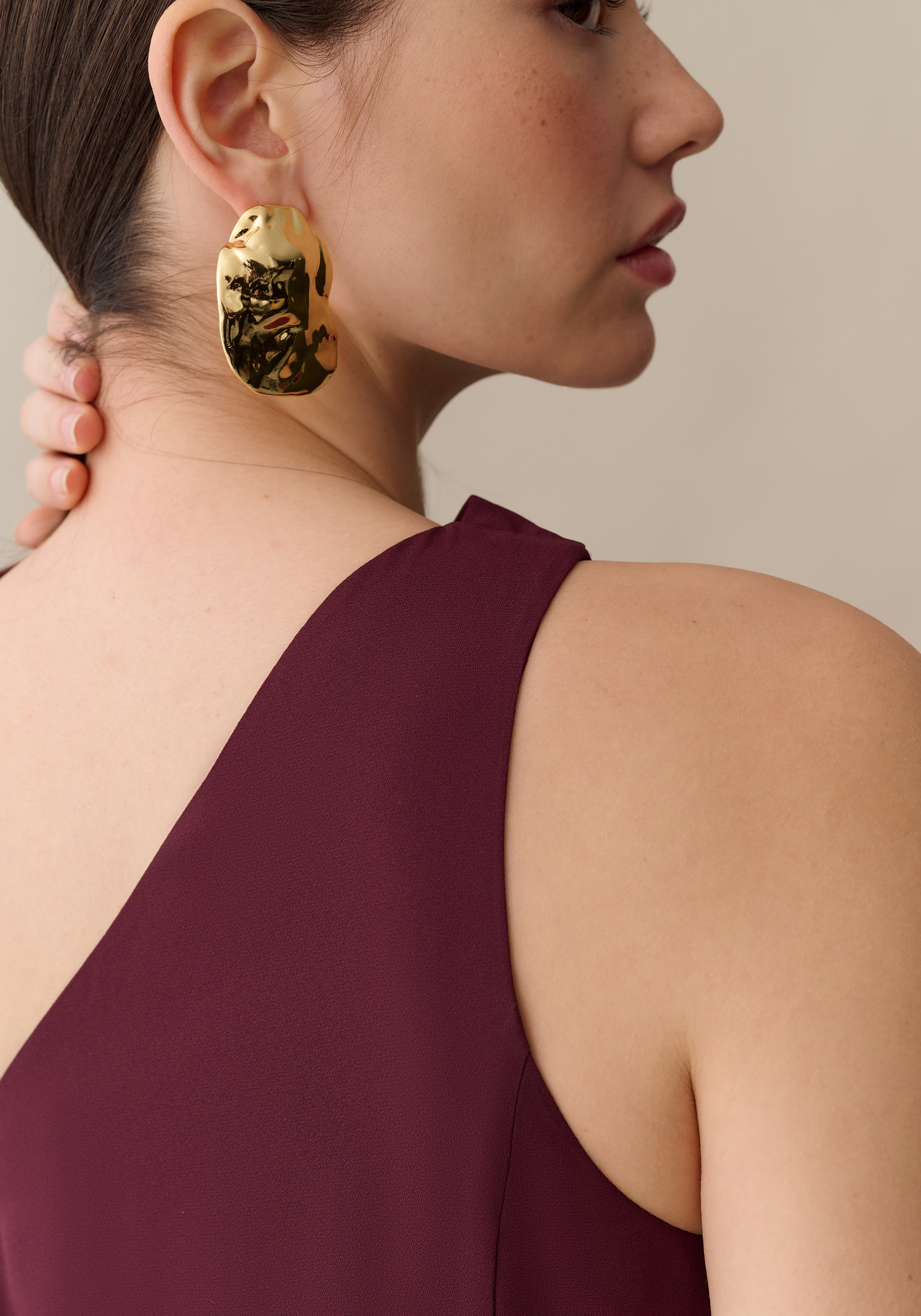 The Citara Dress is made from a beautiful, breezy chiffon, with an elegant draped detail on the one shoulder. Its simple and sleek silhouette adds a touch of sophistication to any occasion.