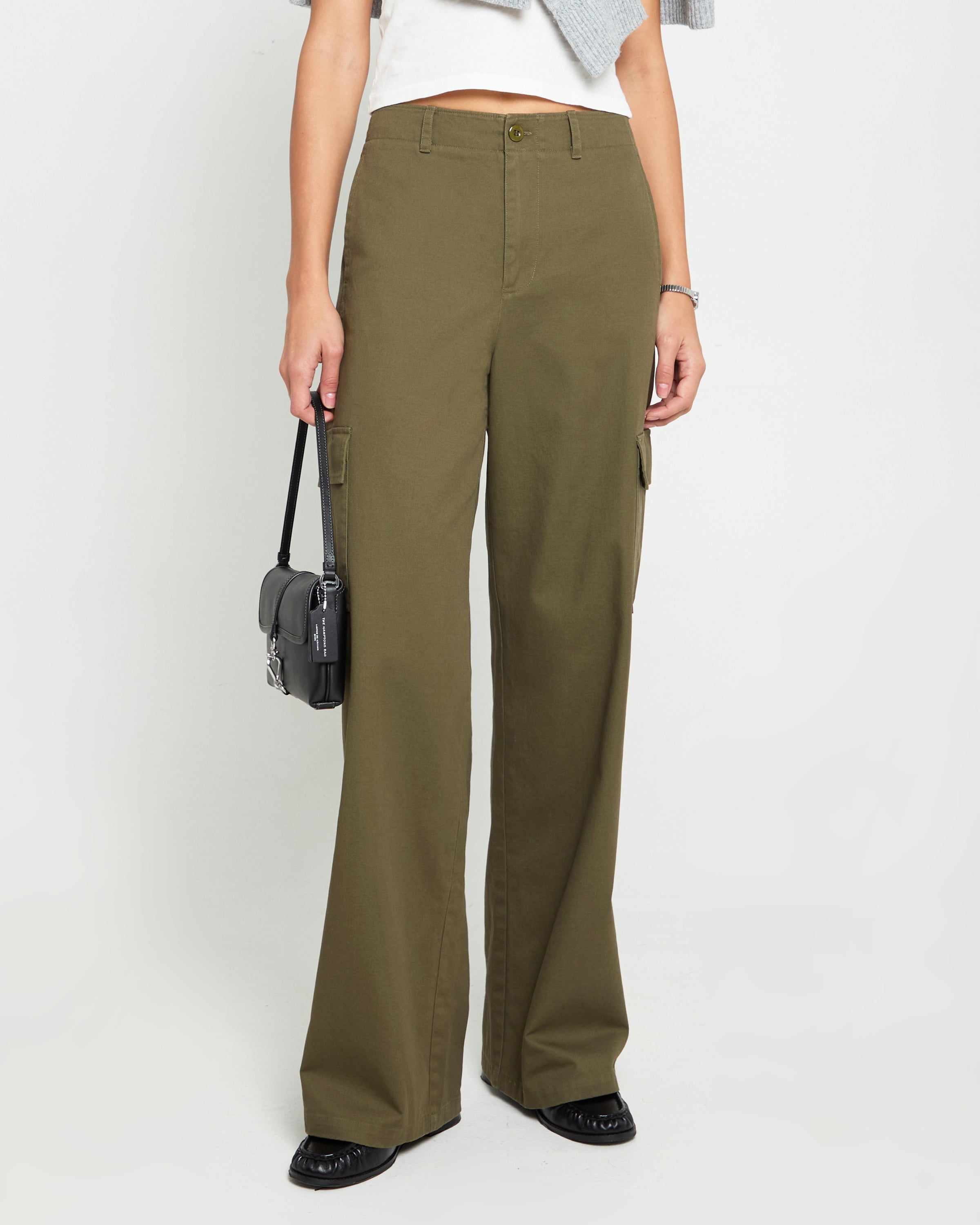 The Clem Pant offers a relaxed fit and mid-rise for effortless style. The wide leg design provides a cool and comfortable fit, perfect for any casual occasion. With cargo pockets and an olive green color, these pants are both functional and fashionable.