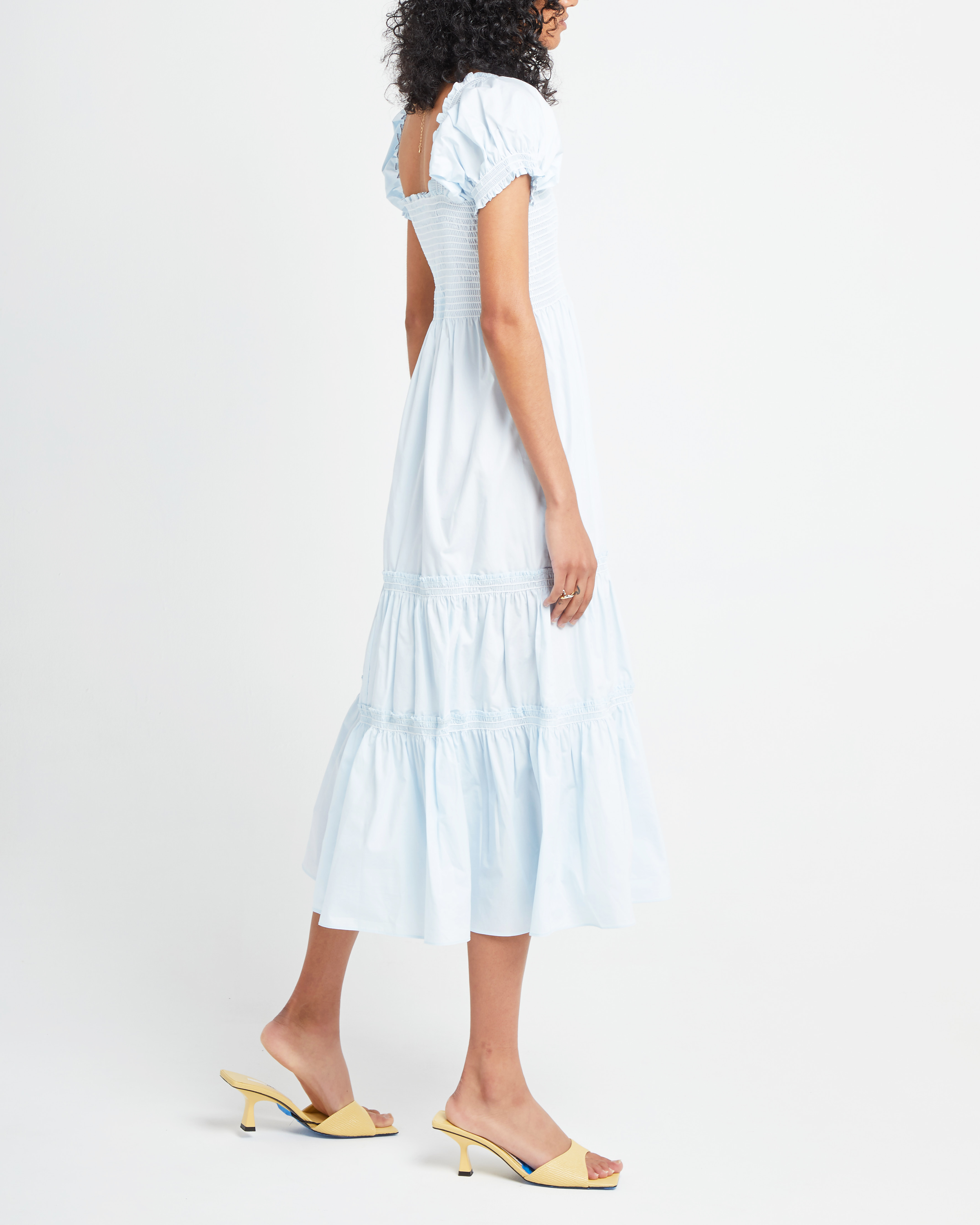 • Sixth image of Square Neck Smocked Maxi Dress, a blue maxi dress, smocked, puff sleeves, short sleeves