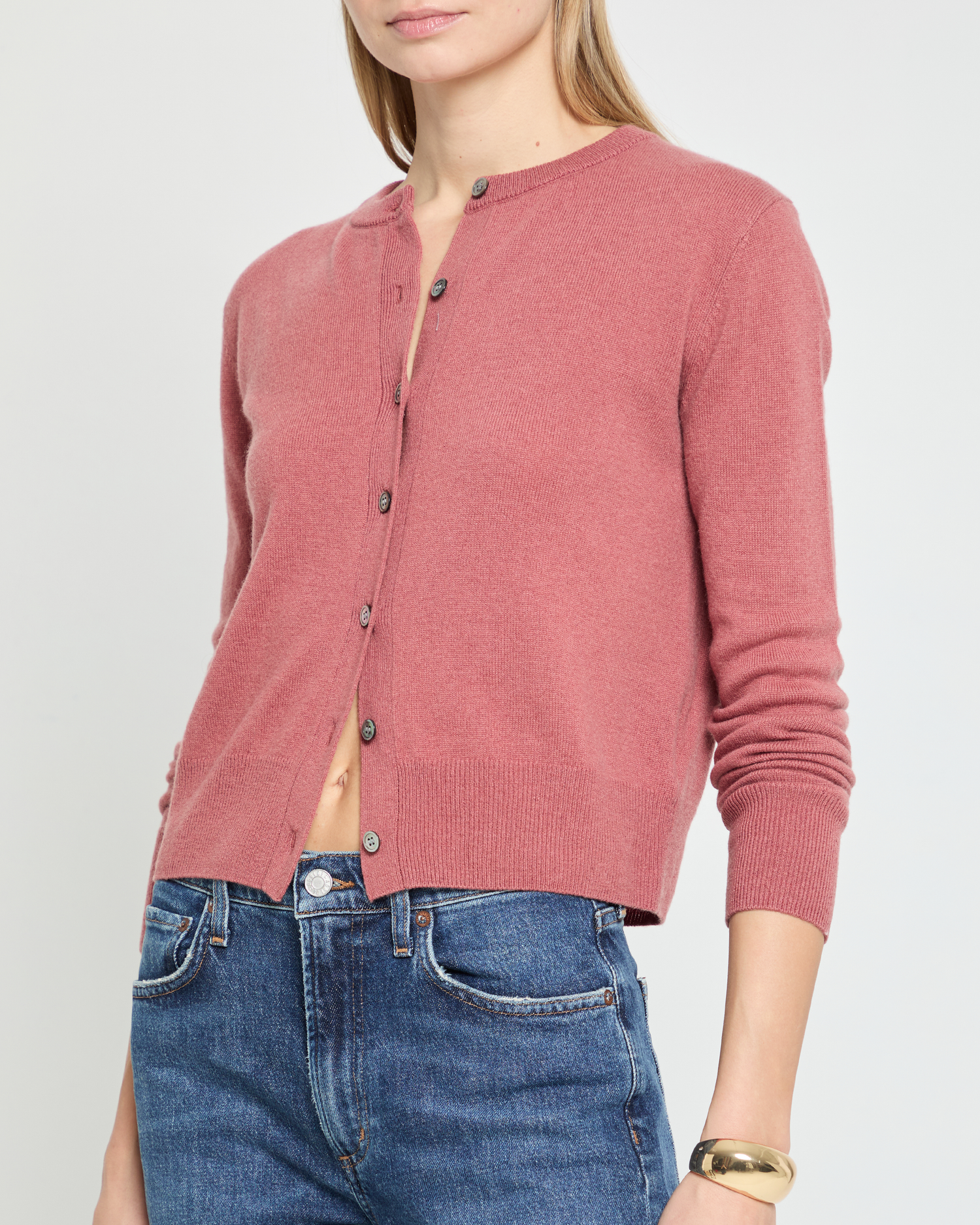 Indulge in luxury with our Finley Cashmere Cardigan. This versatile must-have boasts a soft reddish hue and elegant mother of pearl buttons. Elevate your wardrobe with our high-quality, comfortable and stylish cardigan.