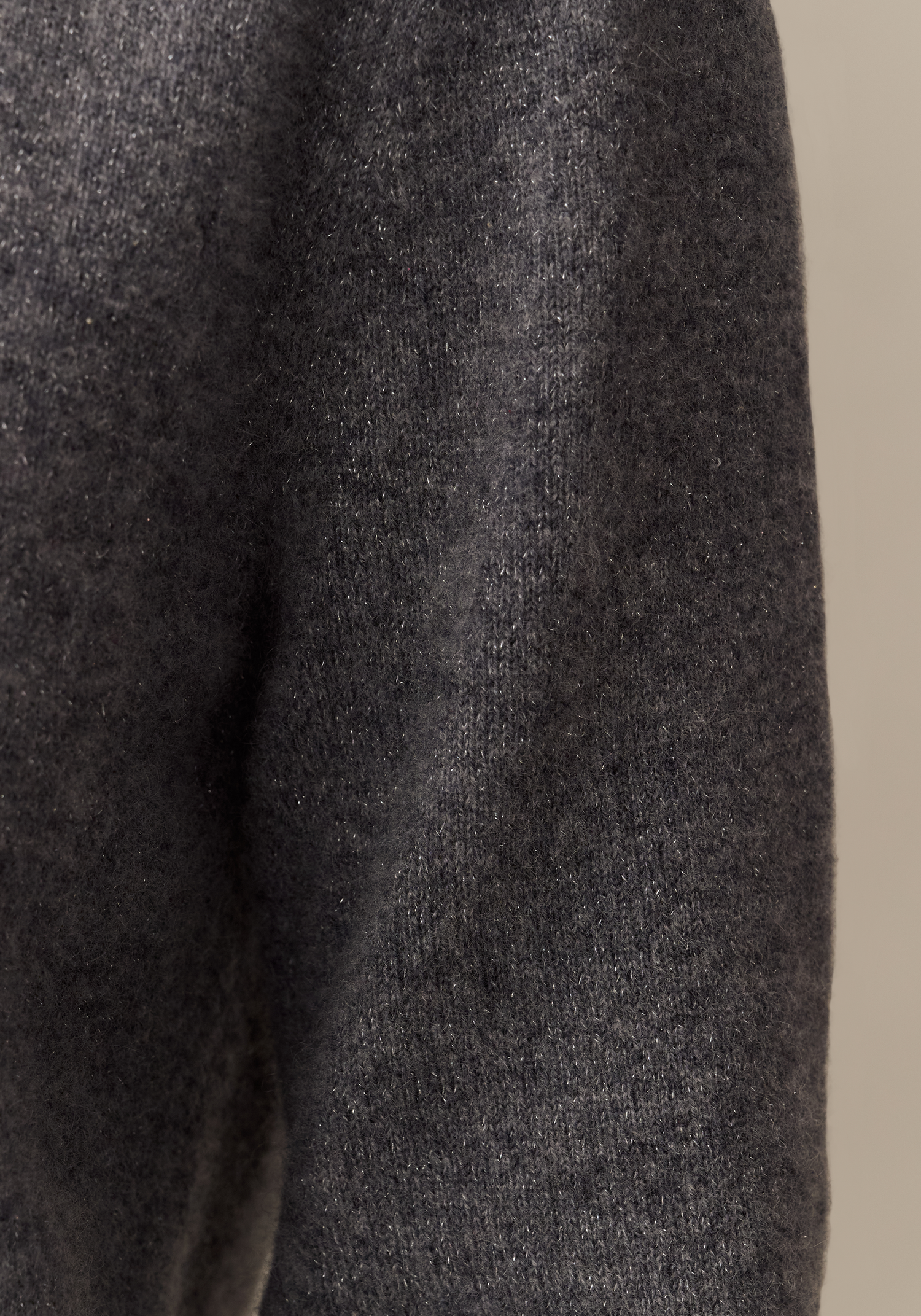 Indulge in luxury with our Finley Cashmere Cardigan. This versatile must-have boasts a cool grey hue woven with silver metallic threads and dotted with fun mini sequins. Elevate your wardrobe with our high-quality, comfortable and stylish cardigan.