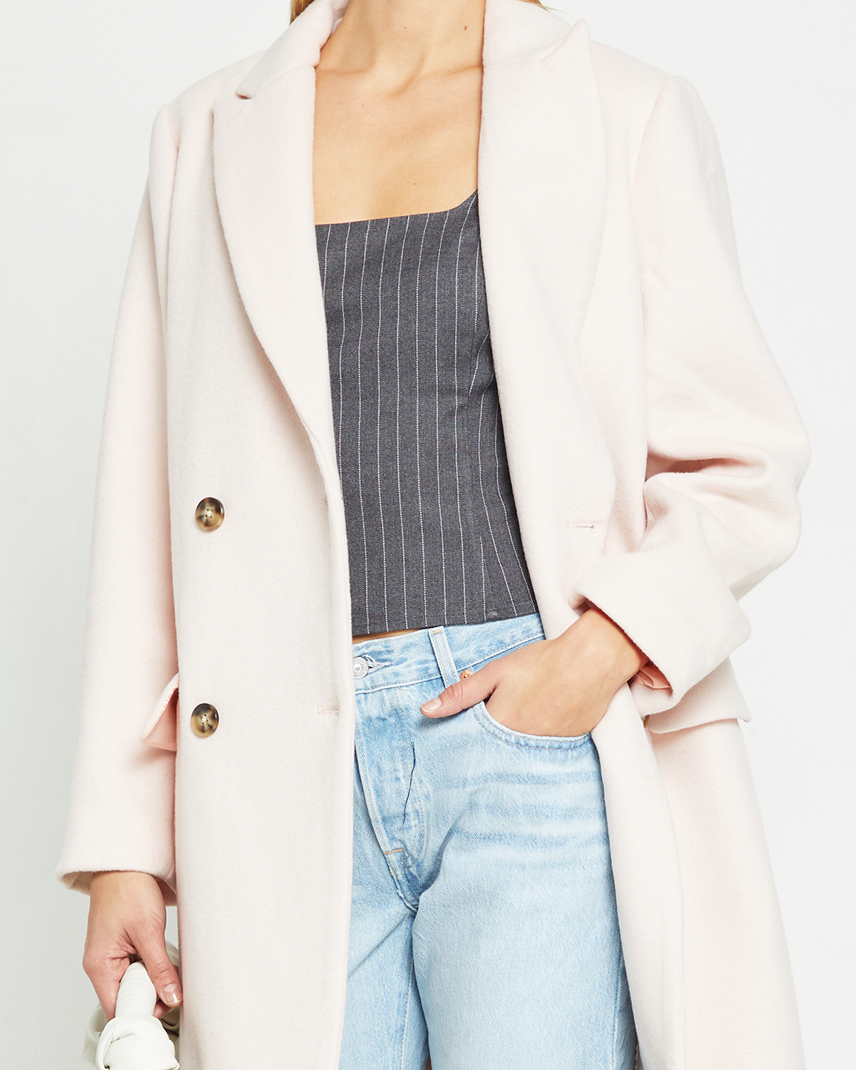 The Frank Coat is designed to keep you warm all winter. This thick wool blend coat is perfect for brisk days, while the classic double-breasted design and button details make it a timeless staple piece.