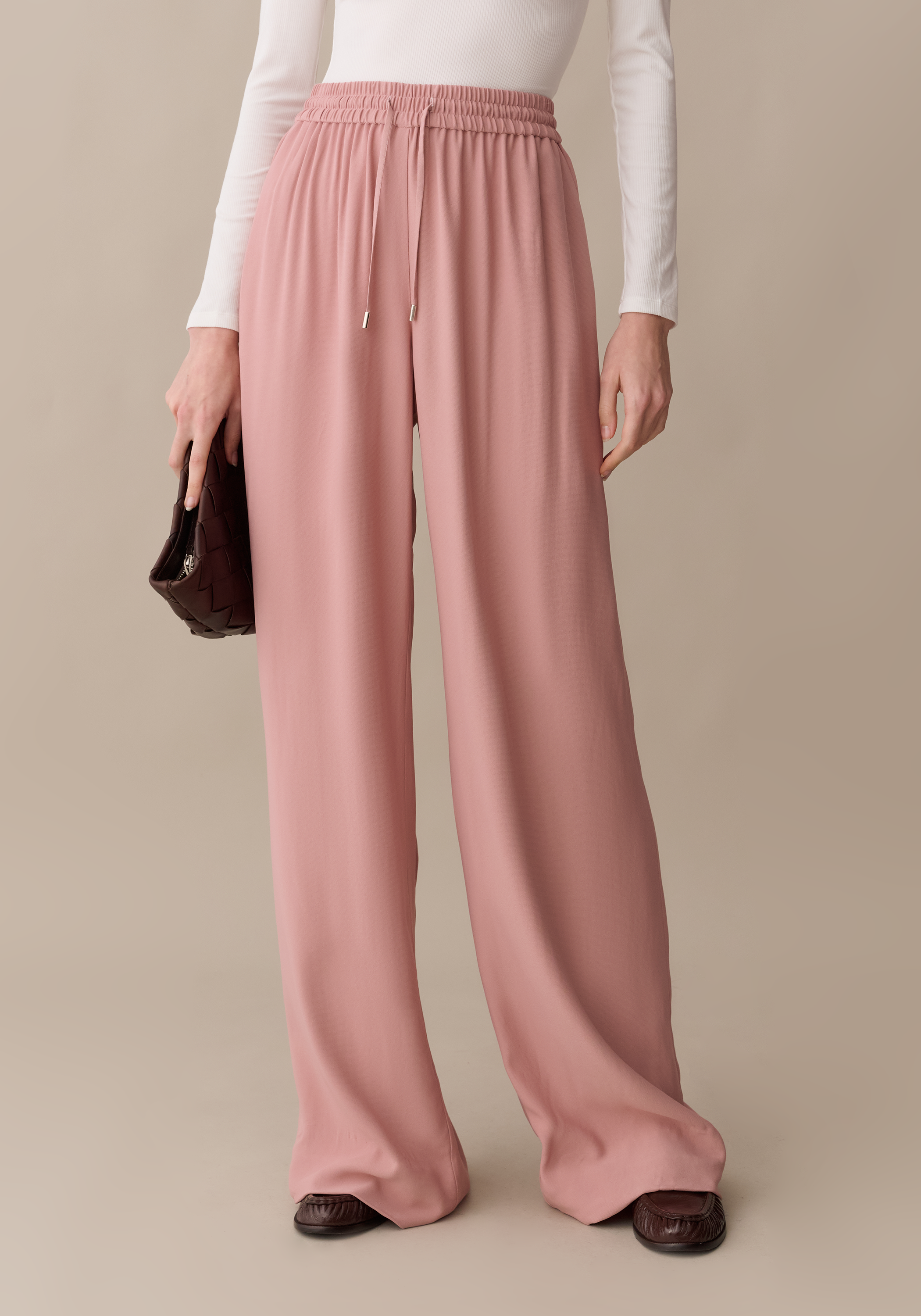 - Elastic waist with drawstring tie