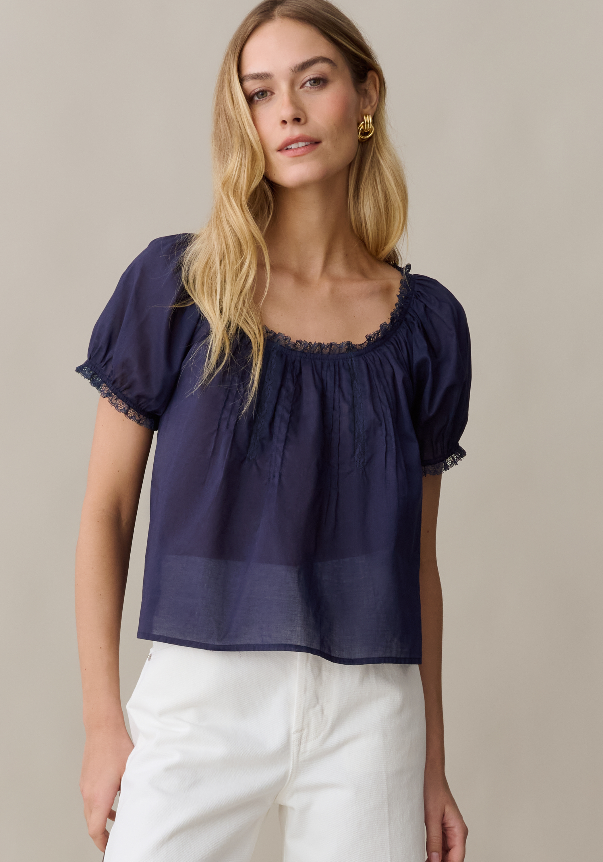 The Isaline Cotton Top is a delicately crafted blouse featuring charming puff sleeves and a light, airy cotton fabric that ensures comfort and breathability. Finished with dainty lace trim and sweet details for an easy, romantic look.