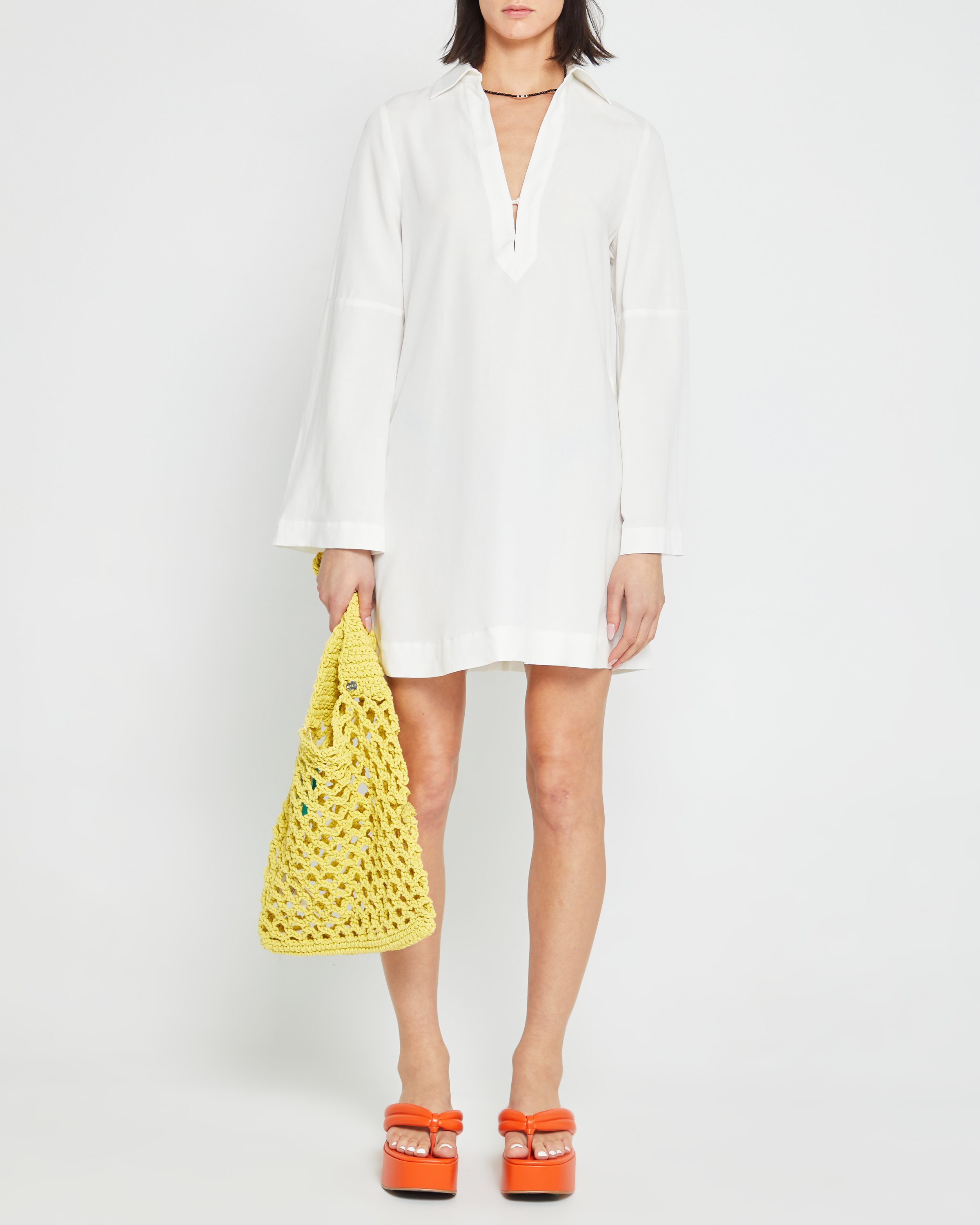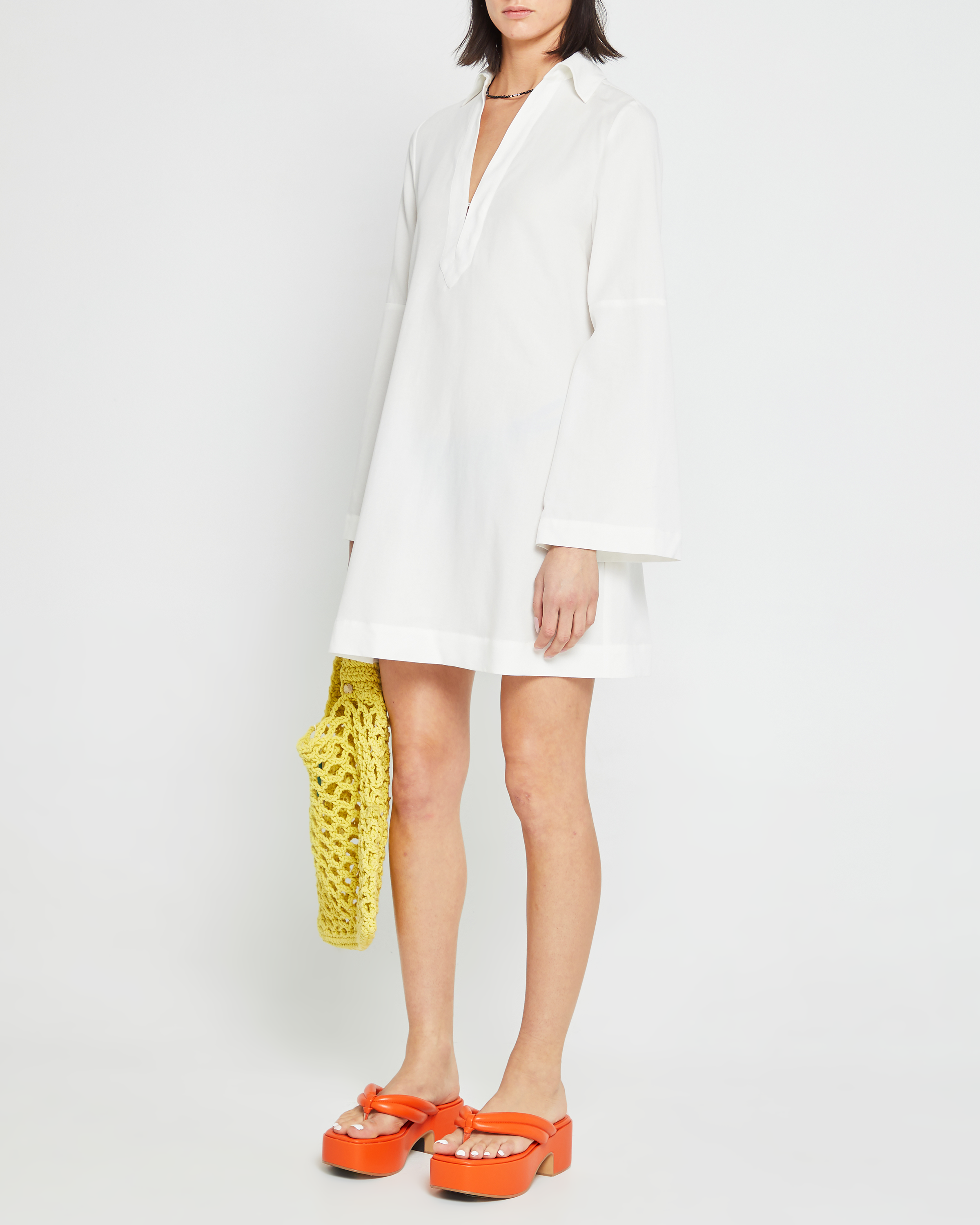 Lara Coverup is crafted from thin and lightweight material, featuring a plunge neckline and collar for a stylish look. Its material makes it airy and comfortable to wear, perfect for the beach or pool.