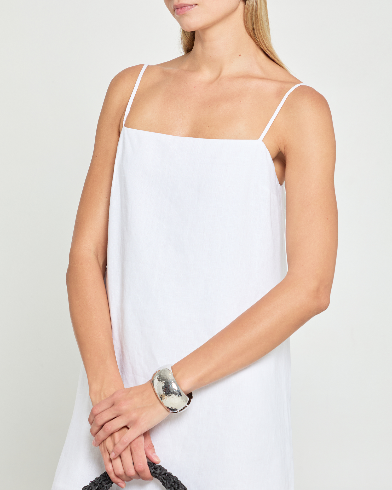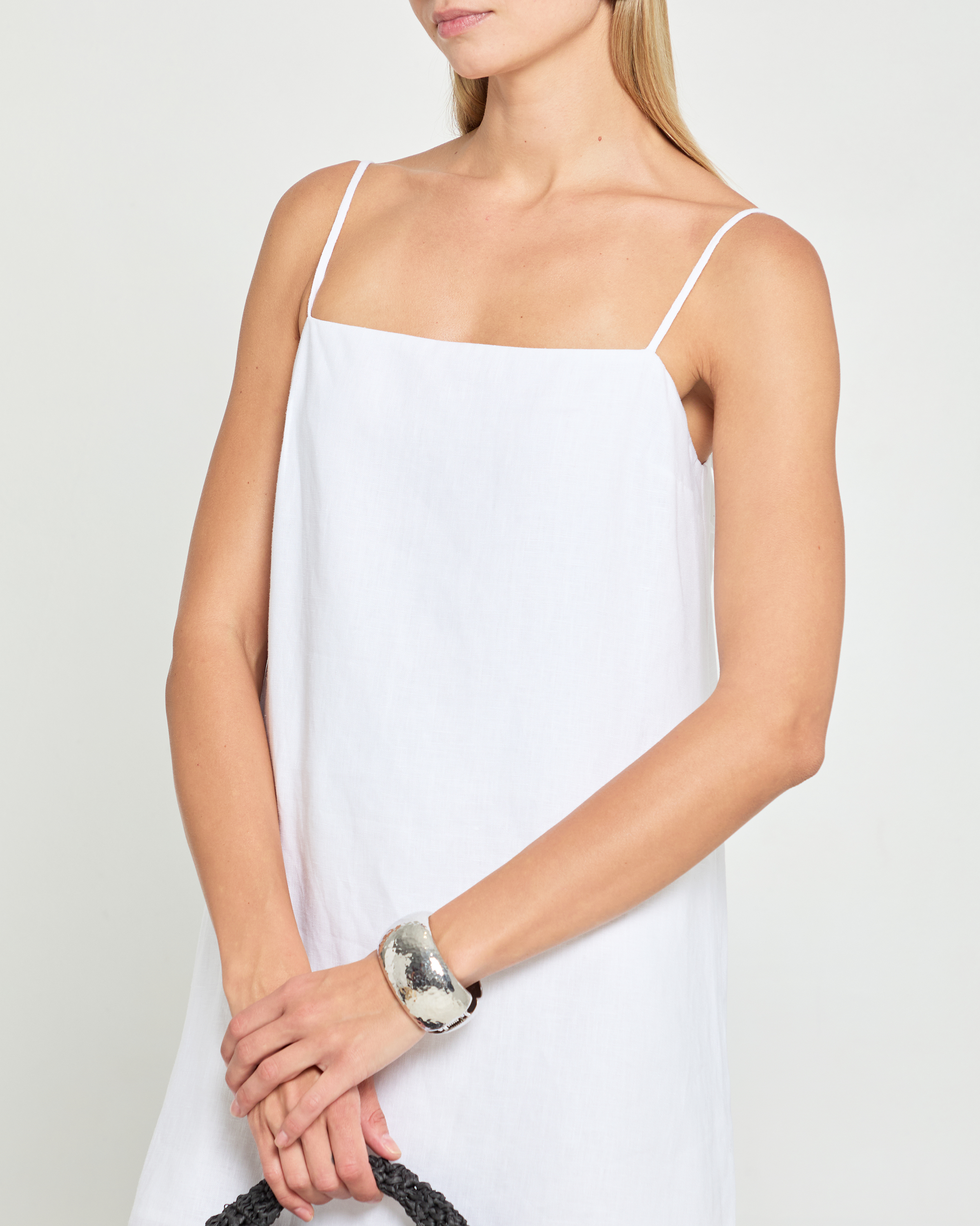 The Rosalie Linen Dress offers versatility and style with its adjustable tie straps, adding both charm and practicality. Made from 100% linen, this easy relaxed sheath dress is perfect for any occasion. Its mini length adds a touch of playfulness to the classic and timeless design.