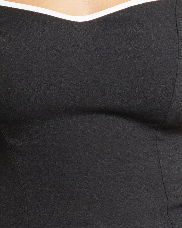 Introducing the Sejal Top - a sleek and chic design with contrasting trim and a flattering fitted silhouette. The sweetheart neckline adds a touch of elegance to this must-have top. Make a statement with this stylish and versatile piece.