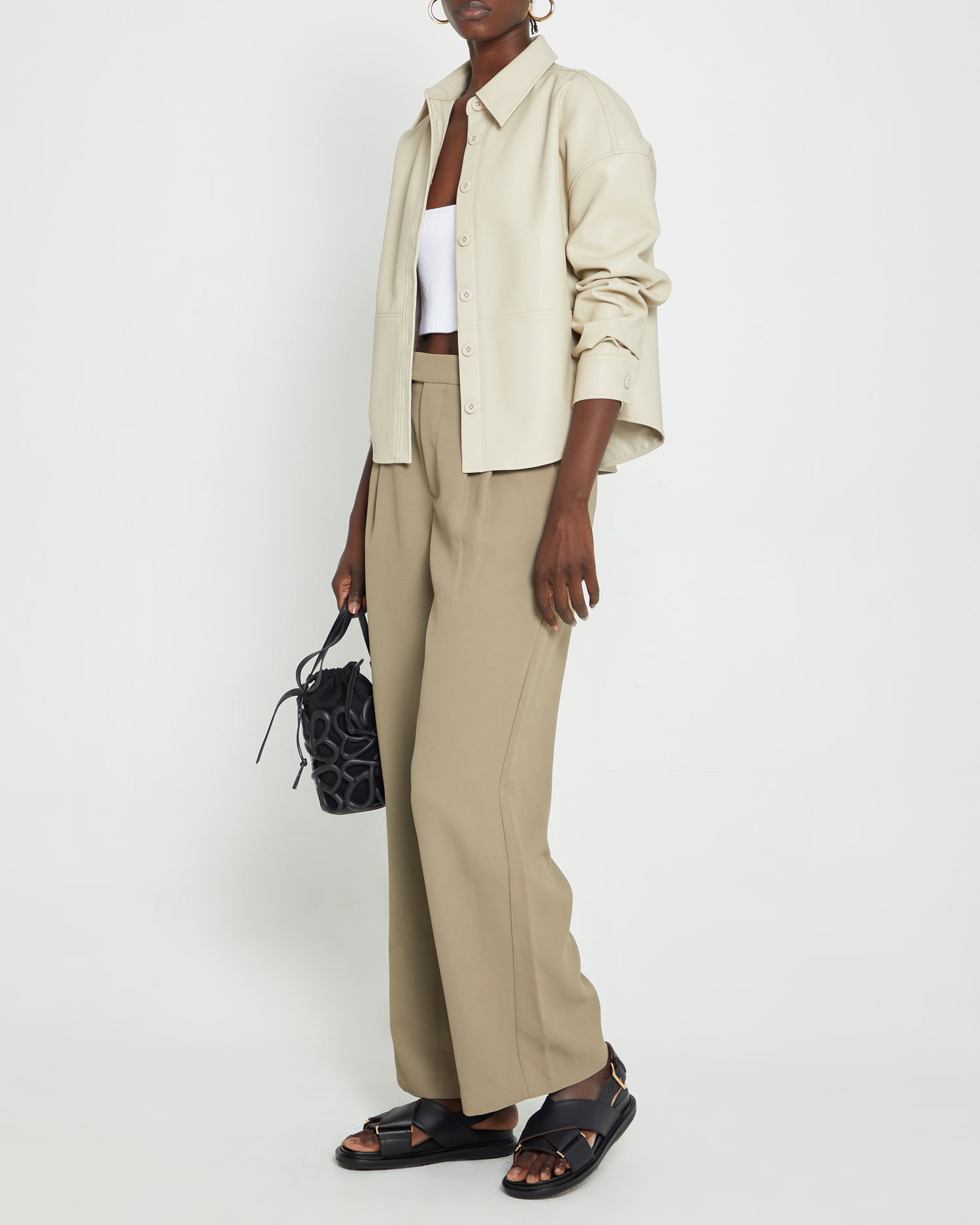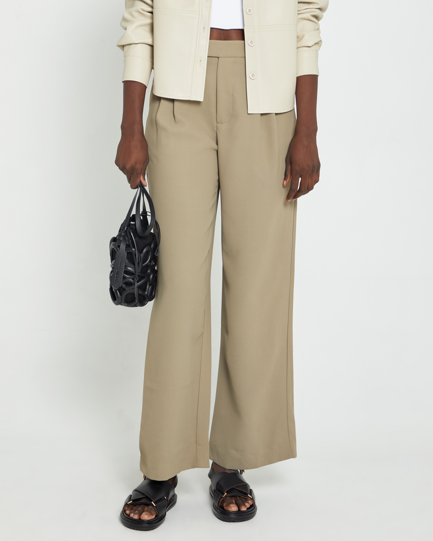 Its tailored fit creates an ideal silhouette for an easy, modern look. Its classic slack cut, pleated front, and straight leg make for a timeless, staple piece.