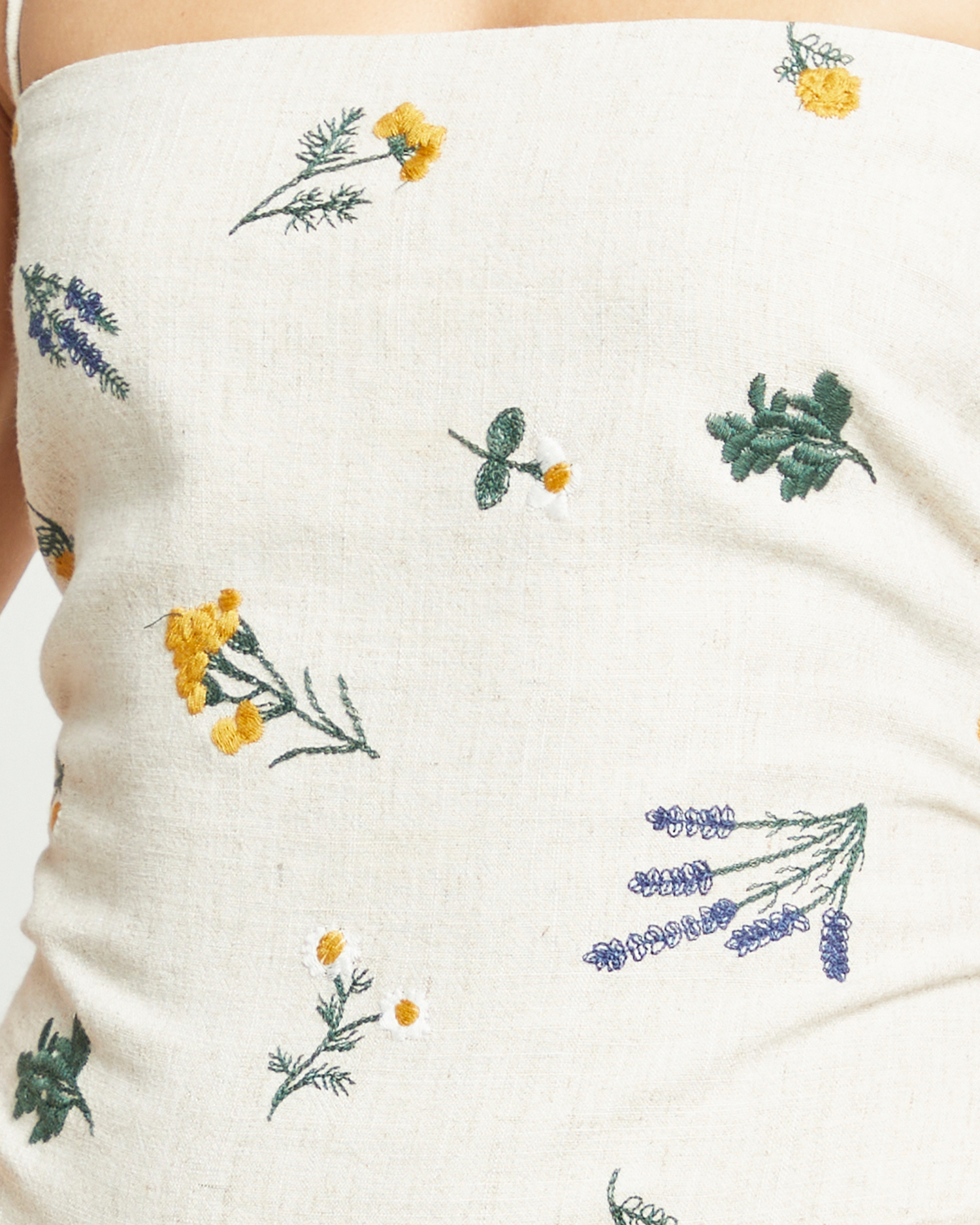 - Content: Main Fabric: 45% Linen, 55% Viscose ; Embroidery: 100% Polyester ; Lining:100% Viscose