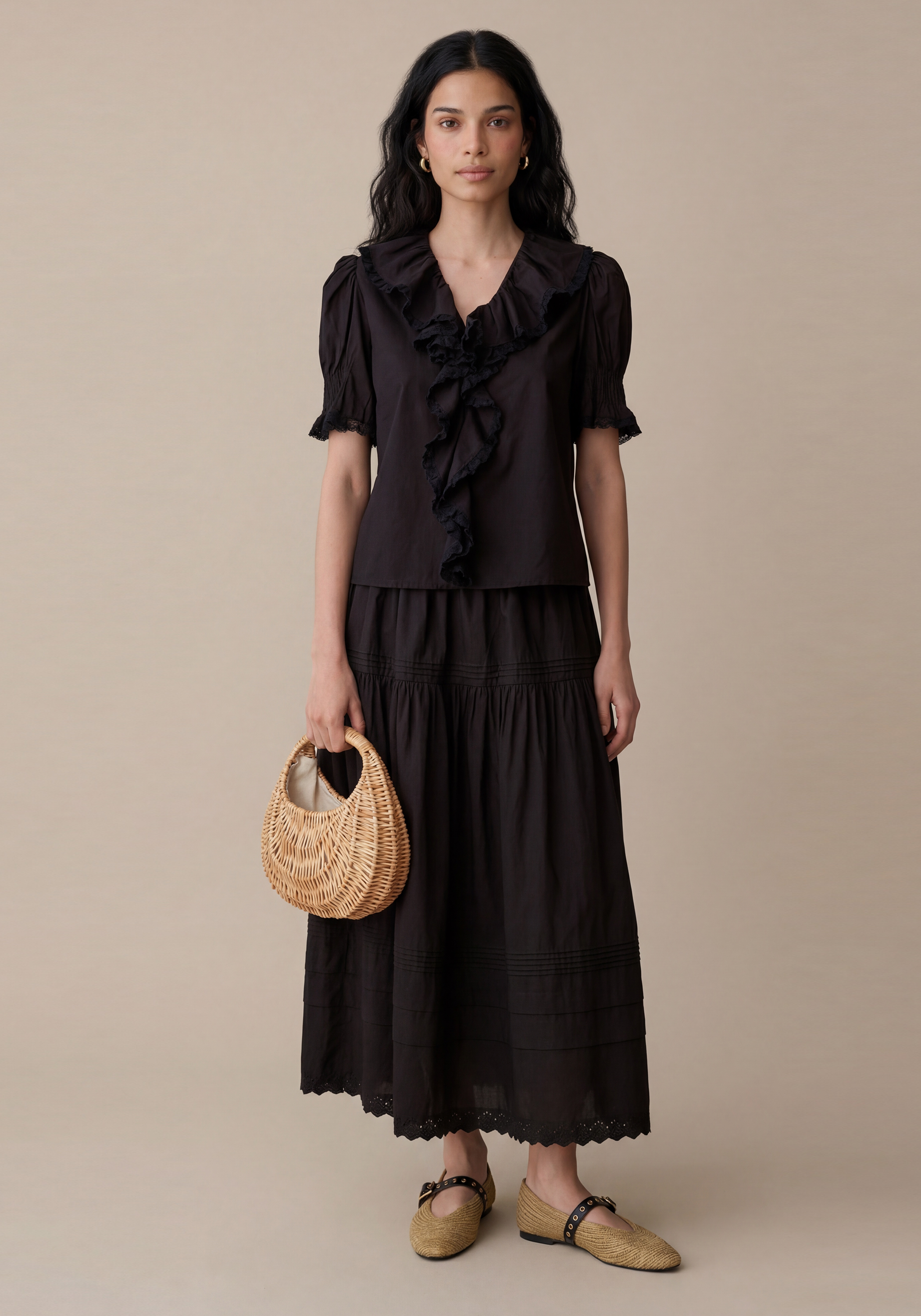 Made with gorgeous ruffles and ruching, every detail of this top is carefully crafted to perfection. The 100% cotton material features a unique texture for a elevated look and also provides a soft and comfortable feel.